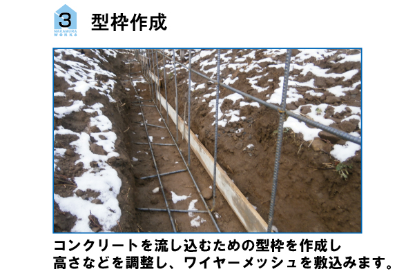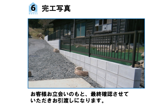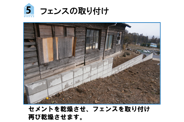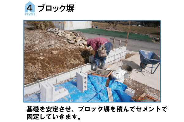 コンクリートブロックを使ったフェンス新設工事の手順です。