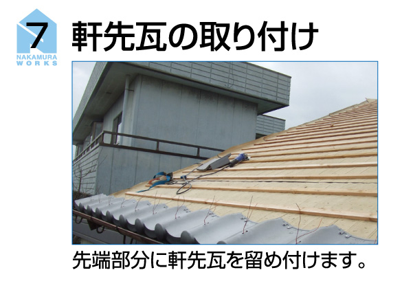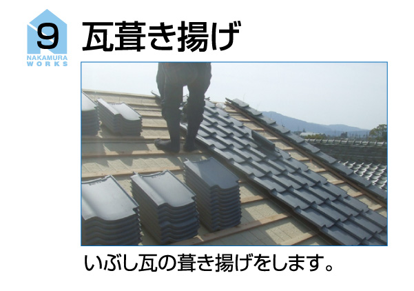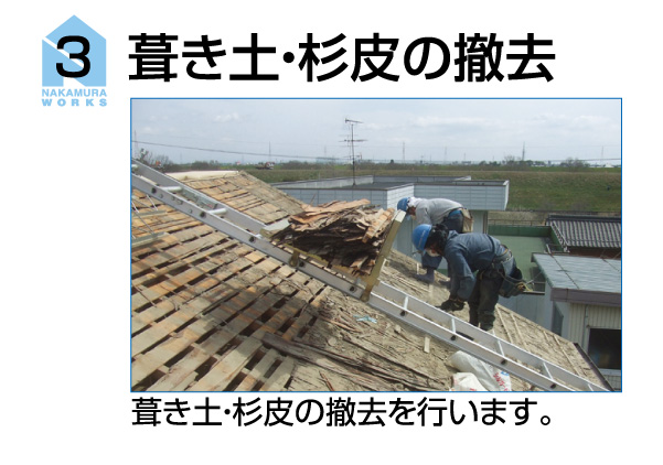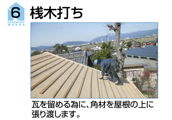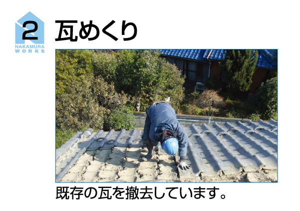 土葺きの和瓦から、桟葺きの和瓦への葺き替え工事の手順です。
