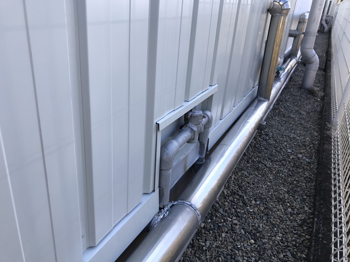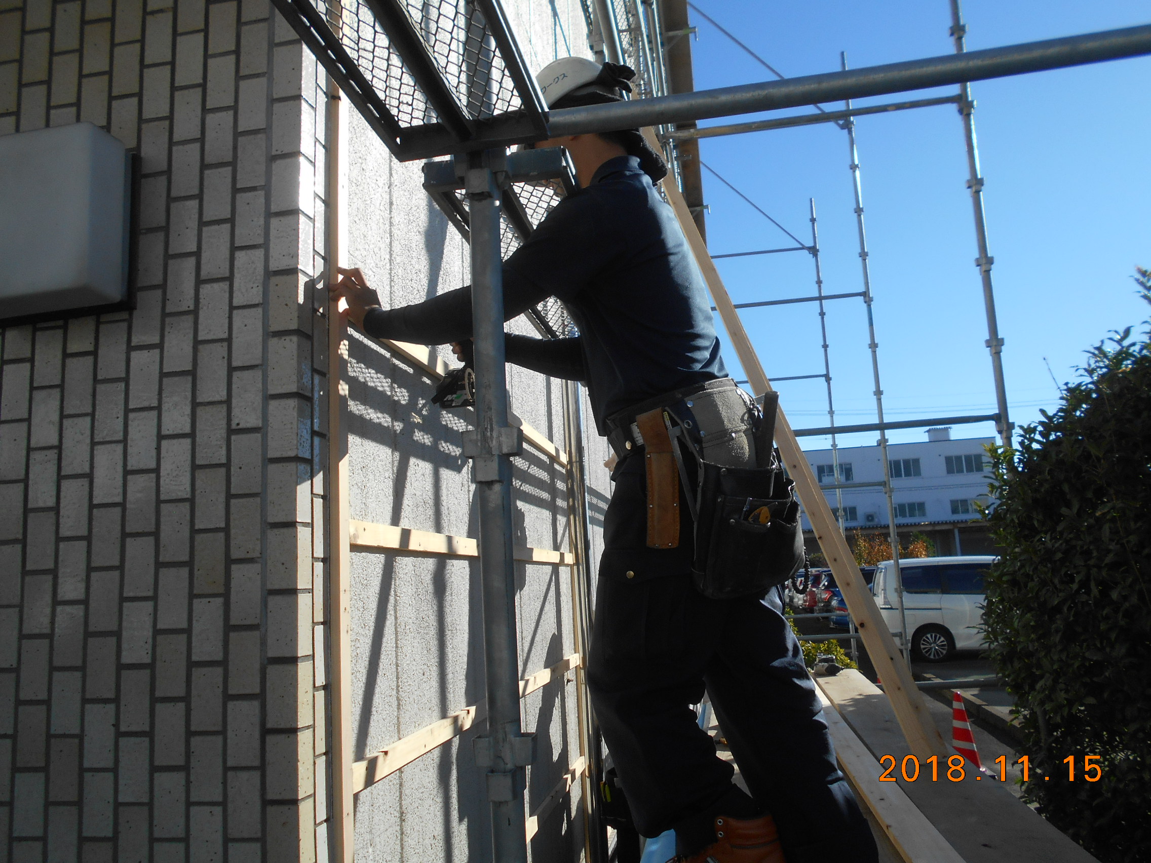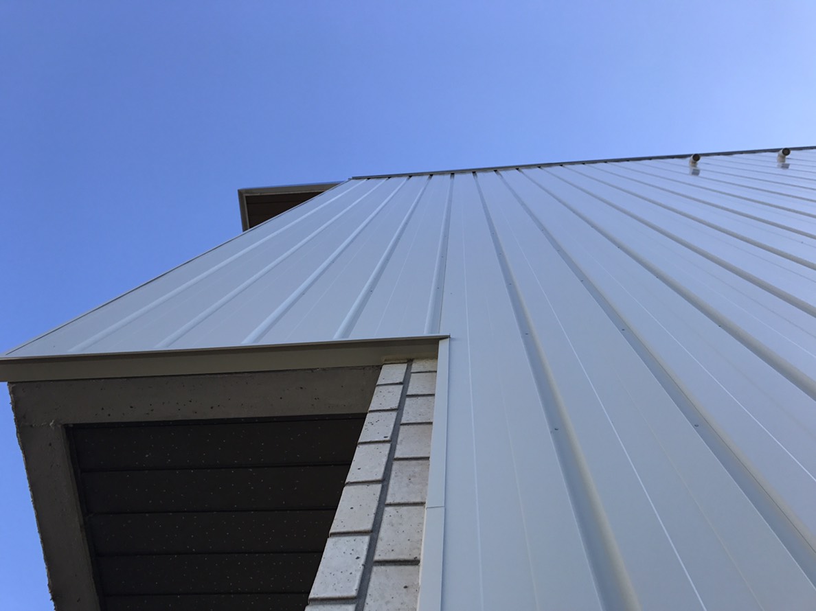 外壁張替工事 仮設 仮設足場架け払い・シート養生 1式 外壁 既設トタン捲り、処分 74.3㎡、下地胴縁工事 74.3㎡、角波張り2型(大型)ガルバリウム鋼板 74.3㎡、笠木 11.0m、土台水切り 10.0m、窓コーナー材 19.6m、フェンス塗装手間 材料支給 1式、開口部 補修 1式