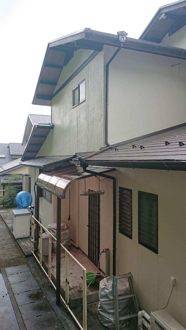 仮設 足場架け払い・シート養生    北面1Fテラス脱着工事 屋根 高圧洗浄    下塗り シーラー    中塗り・上塗り シリコン塗装 外壁 高圧洗浄    下塗り シーラー又はフィラー    中塗り・上塗り シリコン塗装    コーキング(打ち替え・増し打ち) 付帯 庇 塗装 8m    破風 シリコン2回塗り