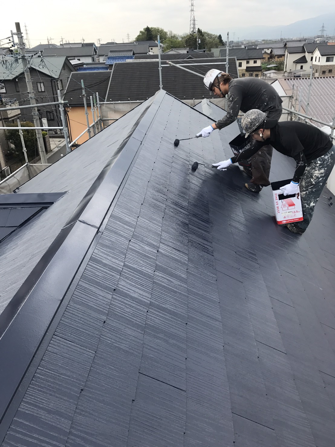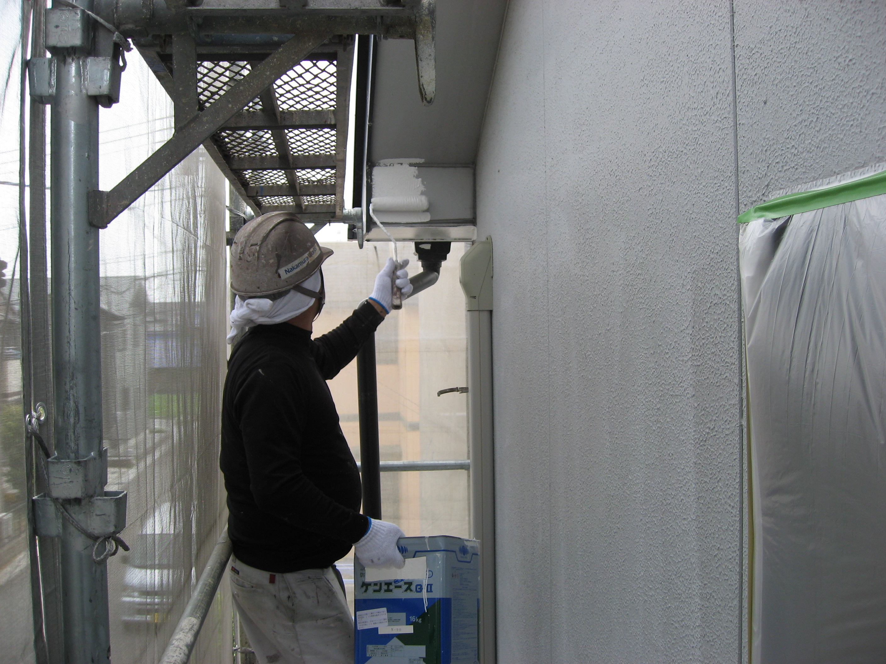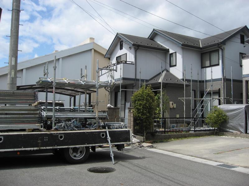 外壁塗装工事 仮設:仮設足場架け払い・シート養生【81.8?】 外壁:高圧洗浄【303.9?】 下塗りエポパワーシーラー【179?】 中塗り超低汚染リファイン2液ハイクラスシリコン【179?】 上塗り超低汚染リファイン2液ハイクラスシリコン【179?】 雑部:軒天シリコン2回塗り【40?】・破風シリコン2回塗り【31.3m】 鼻隠しシリコン2回塗り【35.8m】 たて樋シリコン2回塗り【54.5m】 帯 樹脂材部分塗装シリコン2回塗り【54m】 コーキング打ち替え継部【116.8m】コーキング打ち増し【91.2m】 屋根:下塗りサーモテックシーラーA・B液2液【123.9?】・中塗り超低汚染リファイン2液ハイクラスシリコン【123.9】 上塗り超低汚染リファイン2液ハイクラスシリコン【123.9?) その他:ビス補修 外壁浮き部分、ビス割れ部【1式】(下地確認して) 板金:たて樋脱着コーキング打ち替えに伴う【1式】 諸費:搬入・搬出・養生・清掃等