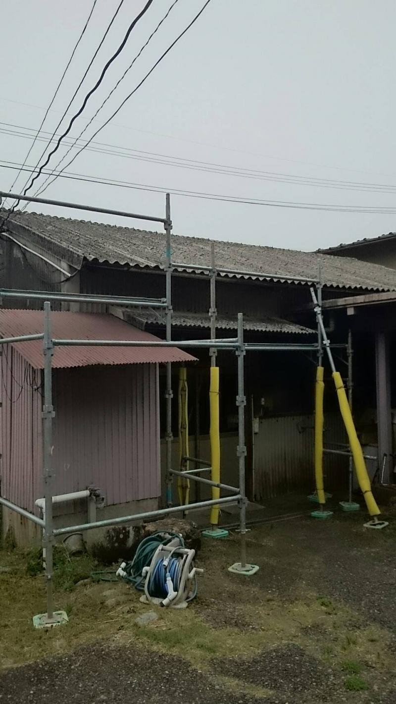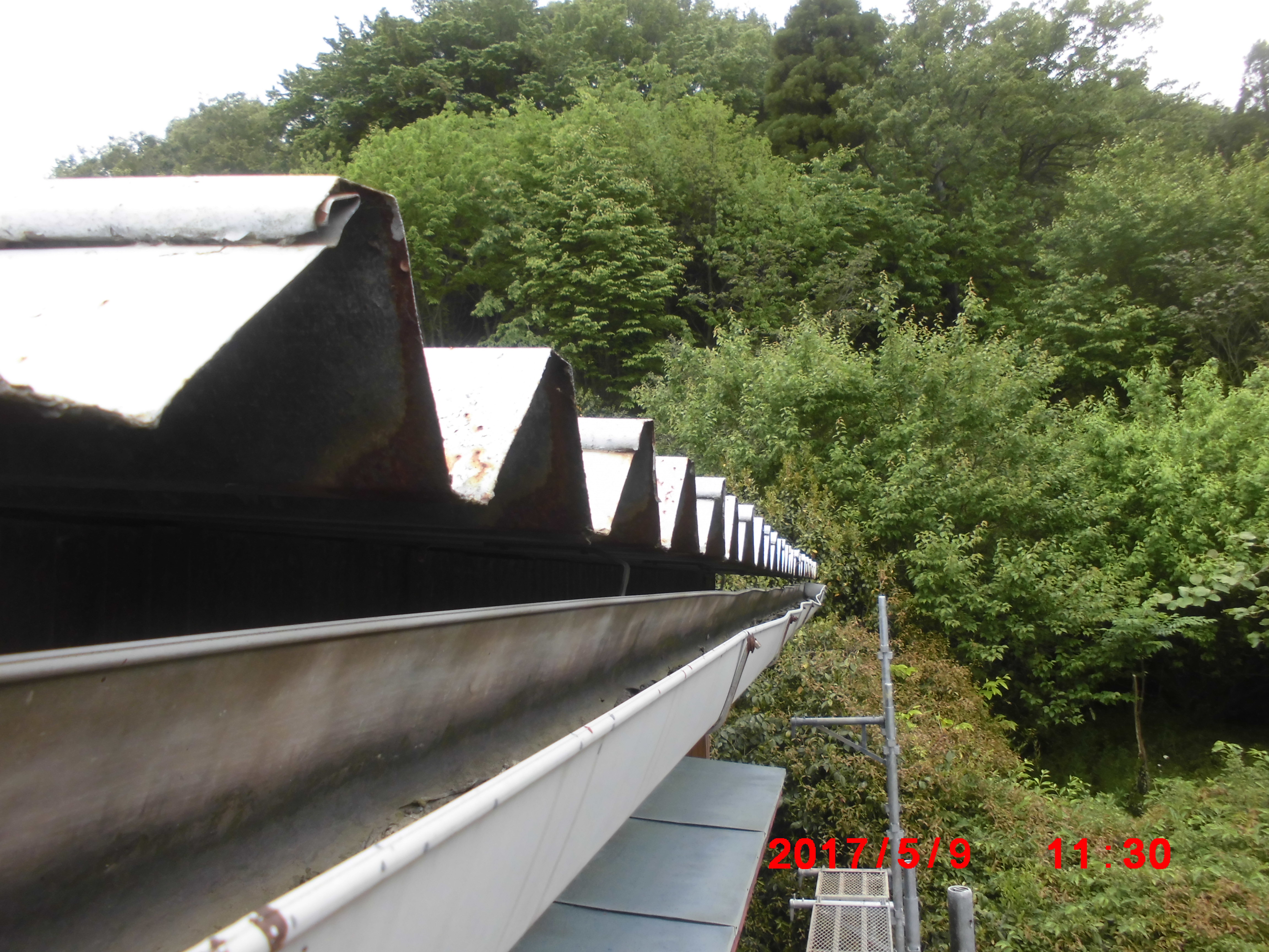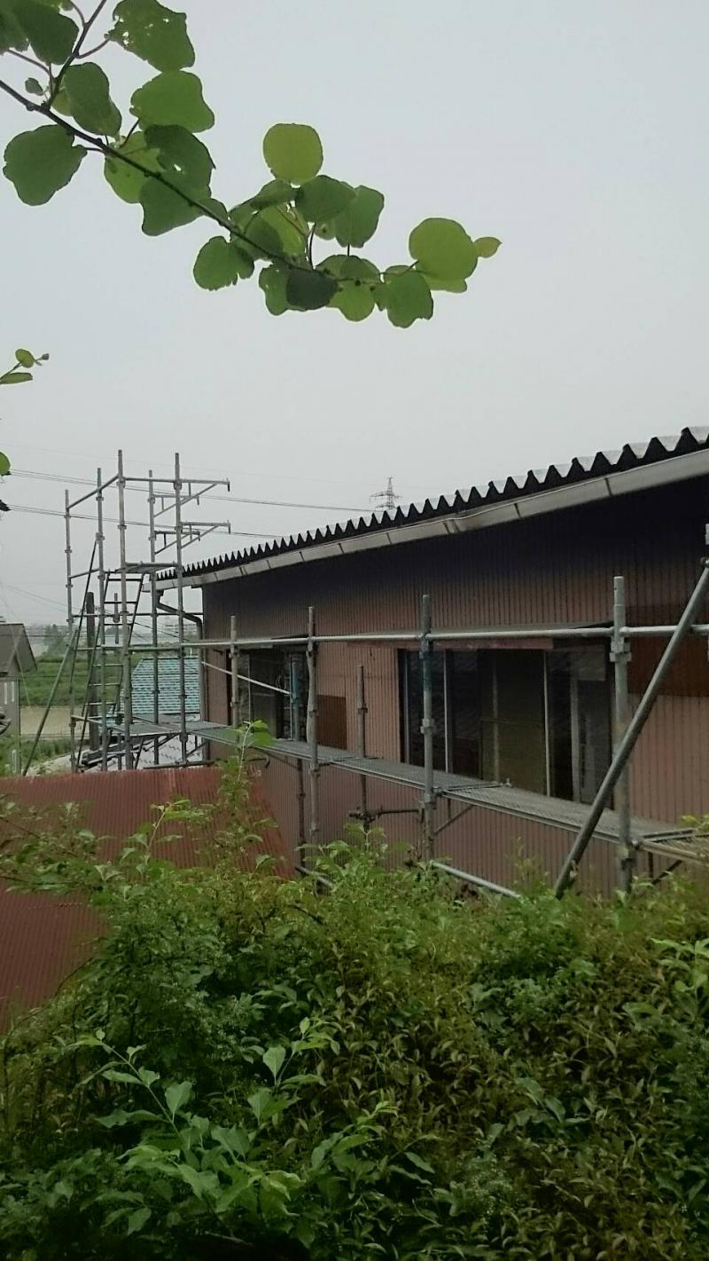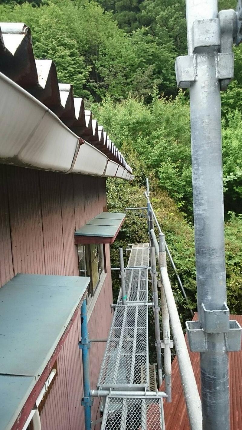 スレート屋根補修工事 スレート屋根補修【1式】 雨樋補修工事 会社(北):既設軒樋撤去・処分【1式】 軒樋半丸105金具込【9.0m】 呼び樋【1.0m】 会社(玄関):軒樋新設工事(3m)・たて樋(3m)【1式】 会社(南):仮設足場架け払い【1式】 軒樋半丸105【9.0m】 集水器,たて樋(4m)【1式】 雨樋補修工事 アパート(東):仮設足場架け払い【1式】 既設軒樋,たて樋撤去・処分【18.0m】 軒樋前高130w(金具込)【10.0m】 たて樋VU100【1.0m】 工場塗装工事 南面塗装:洗浄・シーラー・中塗り・上塗り19-80A 事務棟(東面):サビ止め・中塗り・上塗り庇含みます15-50F 瓦棒カバー工事:瓦棒カバーGL鋼板【27.0?】 窓枠塗装3箇所【1式】