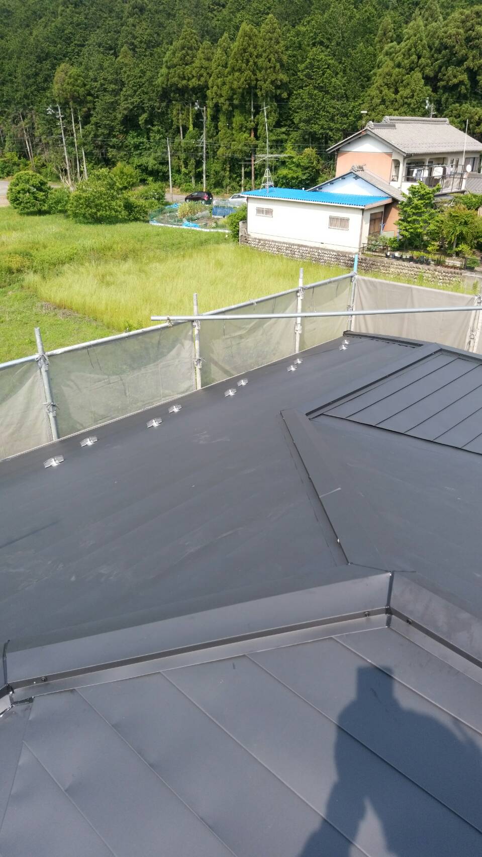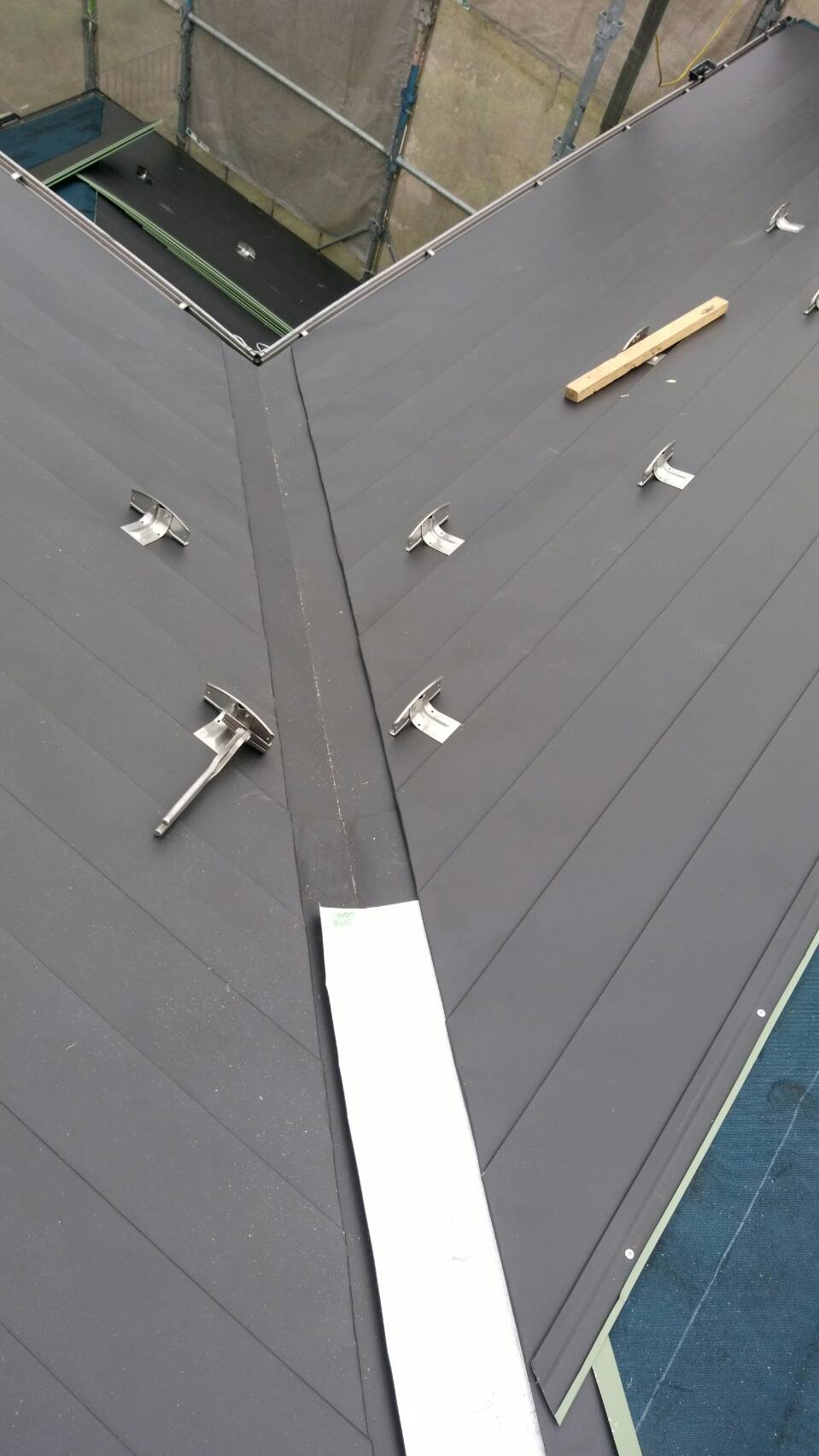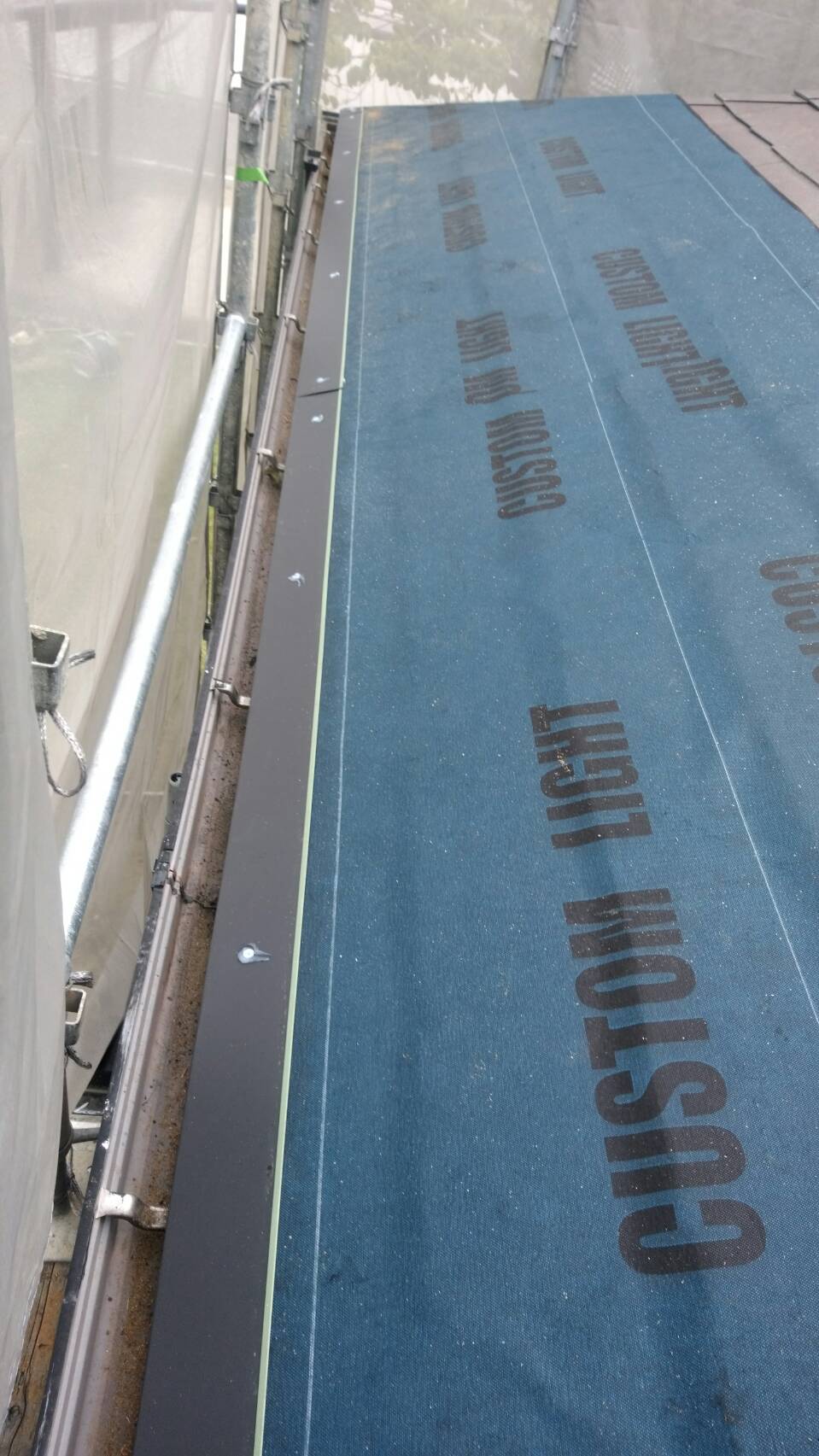 仮設足場 粘着ルーフィング【156?】 横葺きATルーフ【156?】 棟【20m】 北面: 防カビアステック(調色)【30?】 玄関先:タッチアップ 車庫:シリコン塗装 エアコン室外機脱着