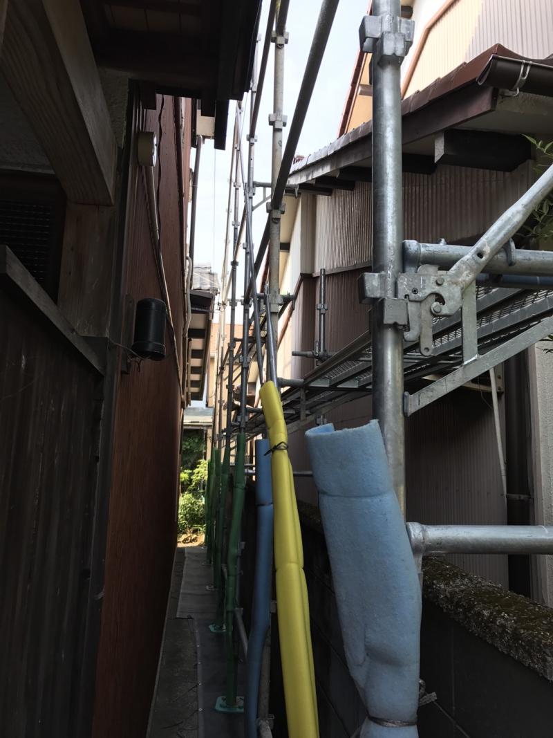 外壁トタン工事 西面(南):仮設足場架け払い【1式】 下地胴縁大工工事【36.0?】 角波ガルバリウム鋼板貼り【36.0?】 樋脱着【1式】 増築(東):既設トタンめくり、処分【4.5?】 角波ガルバリウム鋼板貼り【4.5?】 西面(北):外壁トタン下部役物【5.0m】