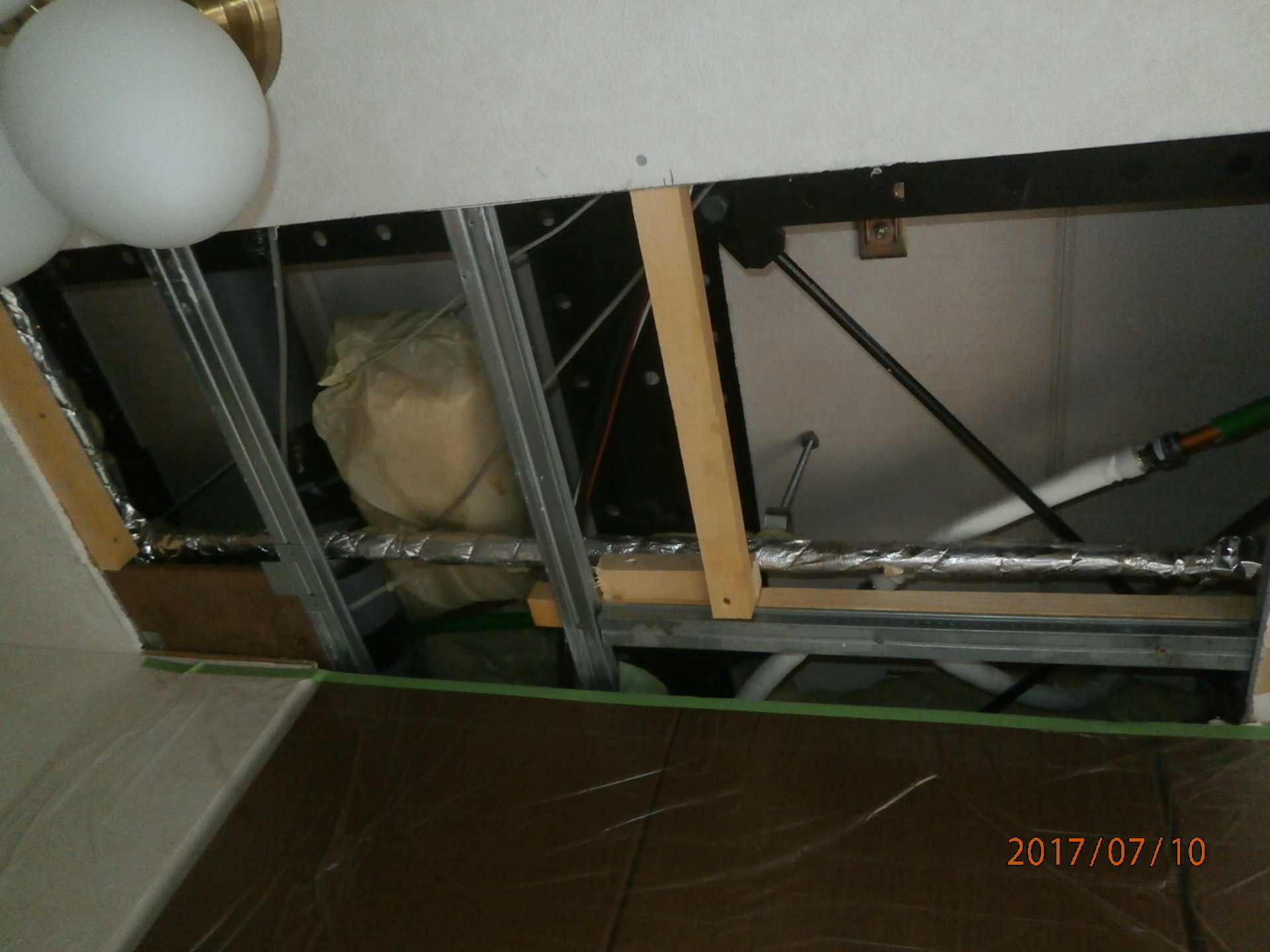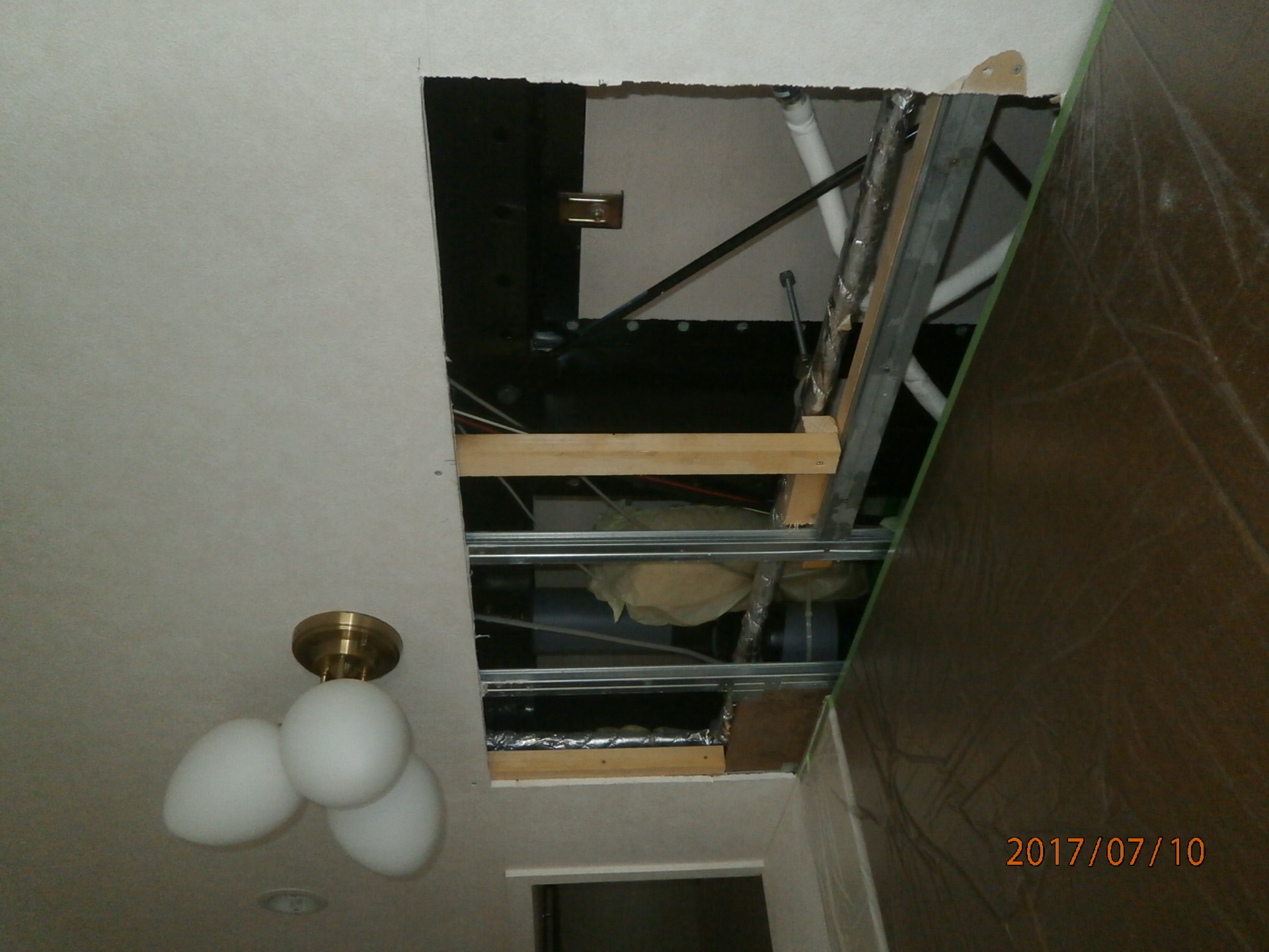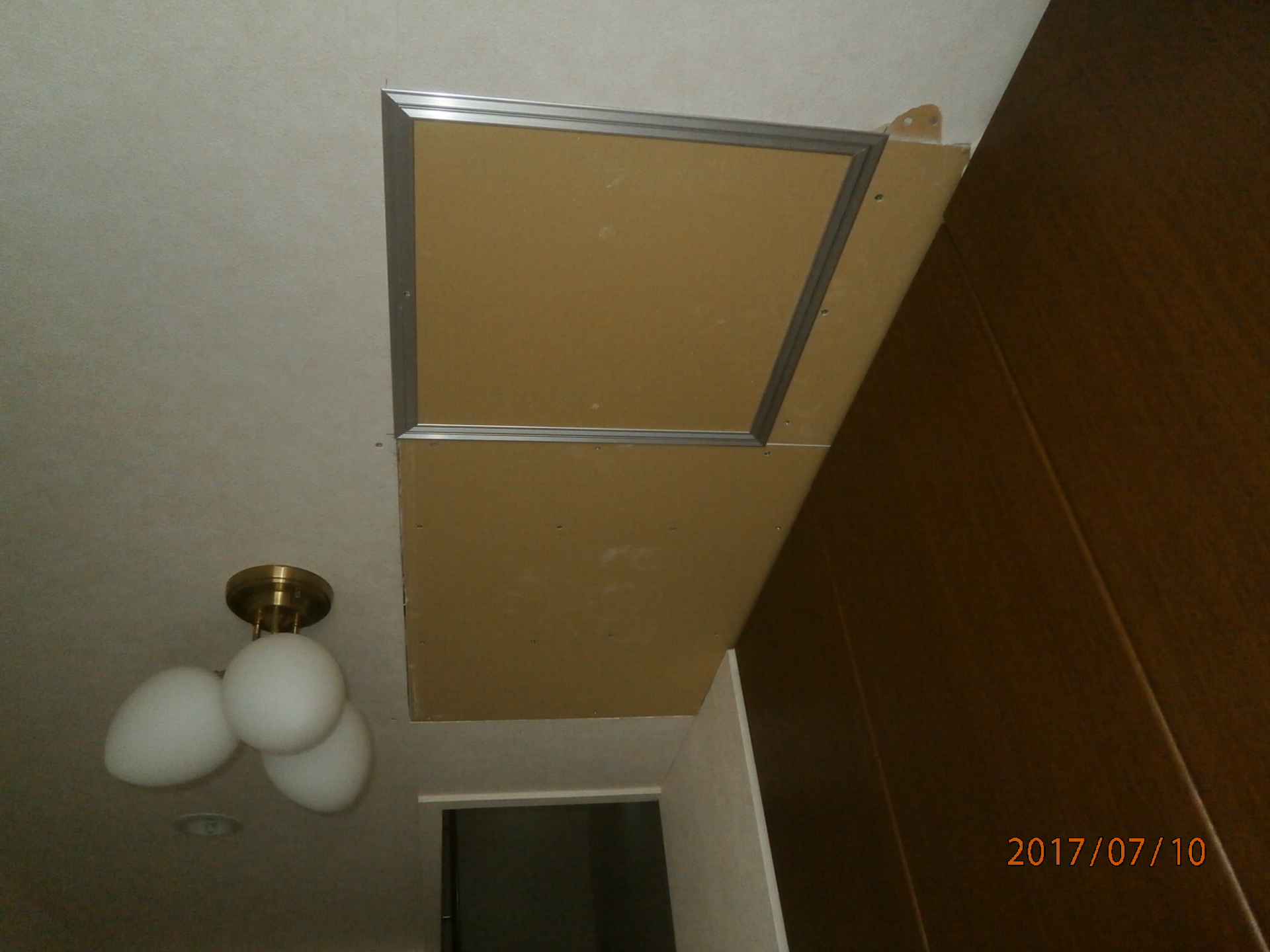 大工:点検口造作手間【1式】 点検口蓋クロス貼り手間共 材料:600角アルミ棒・吊り金具共【1セット】 水道:須藤配管補修【1式】