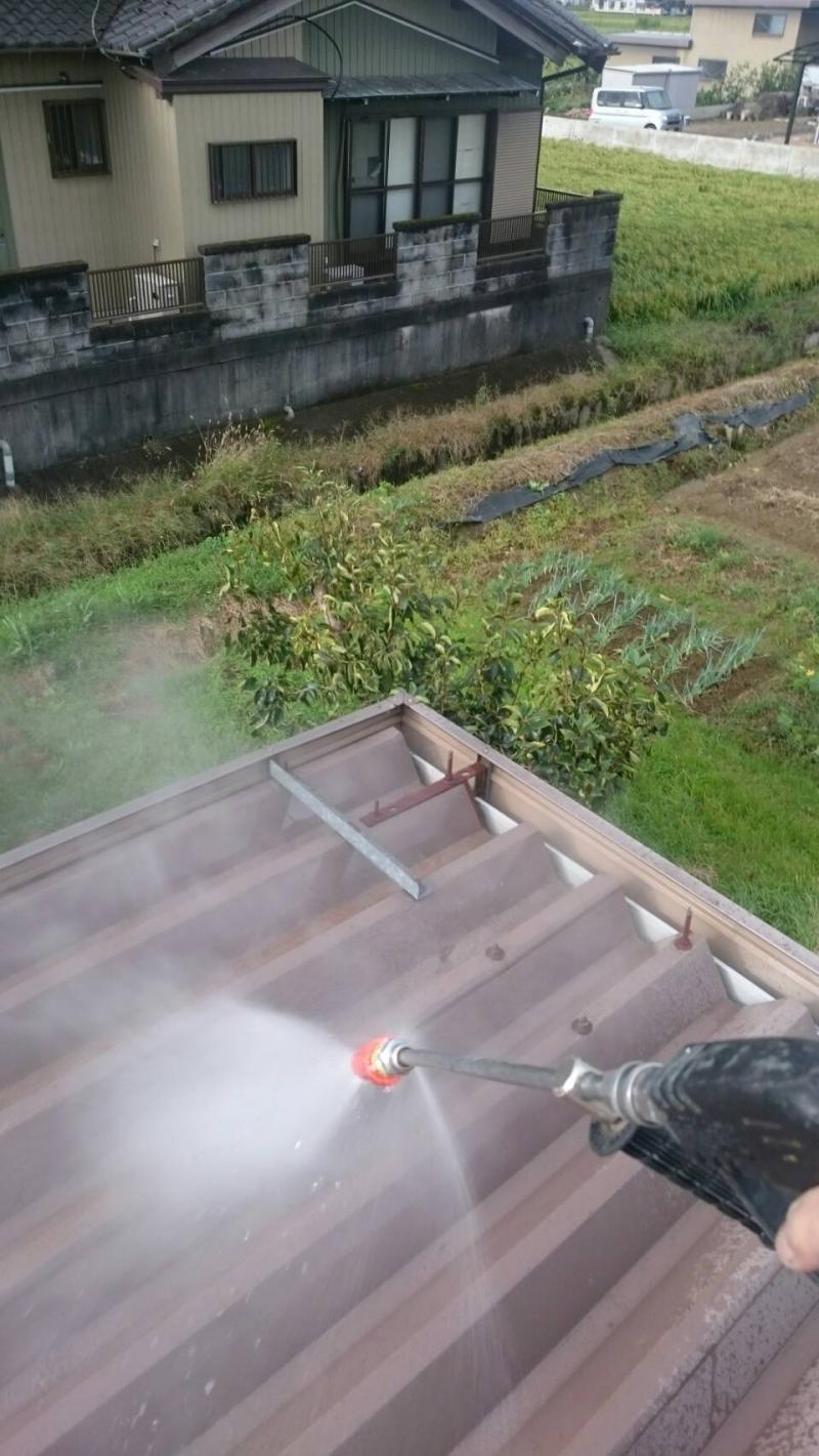 車庫塗装工事 屋根:高圧洗浄【102.8?】 サビ止め塗装【102.8?】 上塗りシリコン塗装【102.8?】