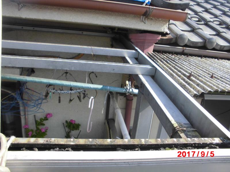 仮設足場架け払い南面 アンテナ脱着 テラス張替え(南)【12.6?】 瓦めくり泥処分【78?】 コンパネ貼り【78?】 北面かさ上げ工事 立て平(横葺き)ガルバリウム【78?】 棟【7m】 既設軒樋架け替え(南面のみ)【7m】 集水器【1個】 呼び樋【1m】 取り合い(北面)