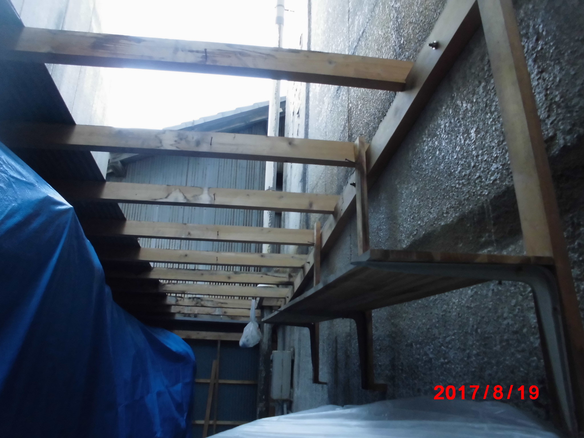 屋上防水:物置解体・組立(風除け板設置) 高圧洗浄 既存防水層撤去・処分【全体の10%】 下地処理 ウレタン塗膜防水通気緩衝工法【58.2?】 改修用ドレン 脱気筒取付 端末コーキング エアコン脱着 外壁塗装:仮設足場架け払い【435?】 南面テラス脱着 高圧洗浄 下塗りフィラー【295?】 中塗りシリコン【295?】 上塗りシリコン【295?】 シーリング補修 並みトタン張替え 配管等付帯部塗装 階段・ケレン、シリコン塗装