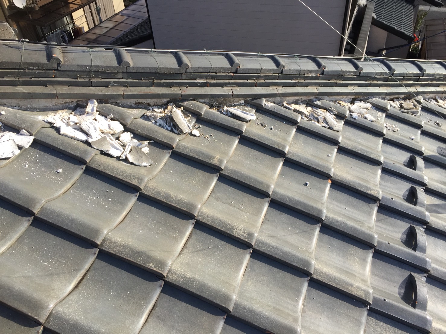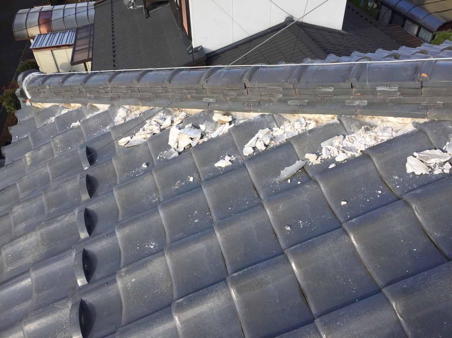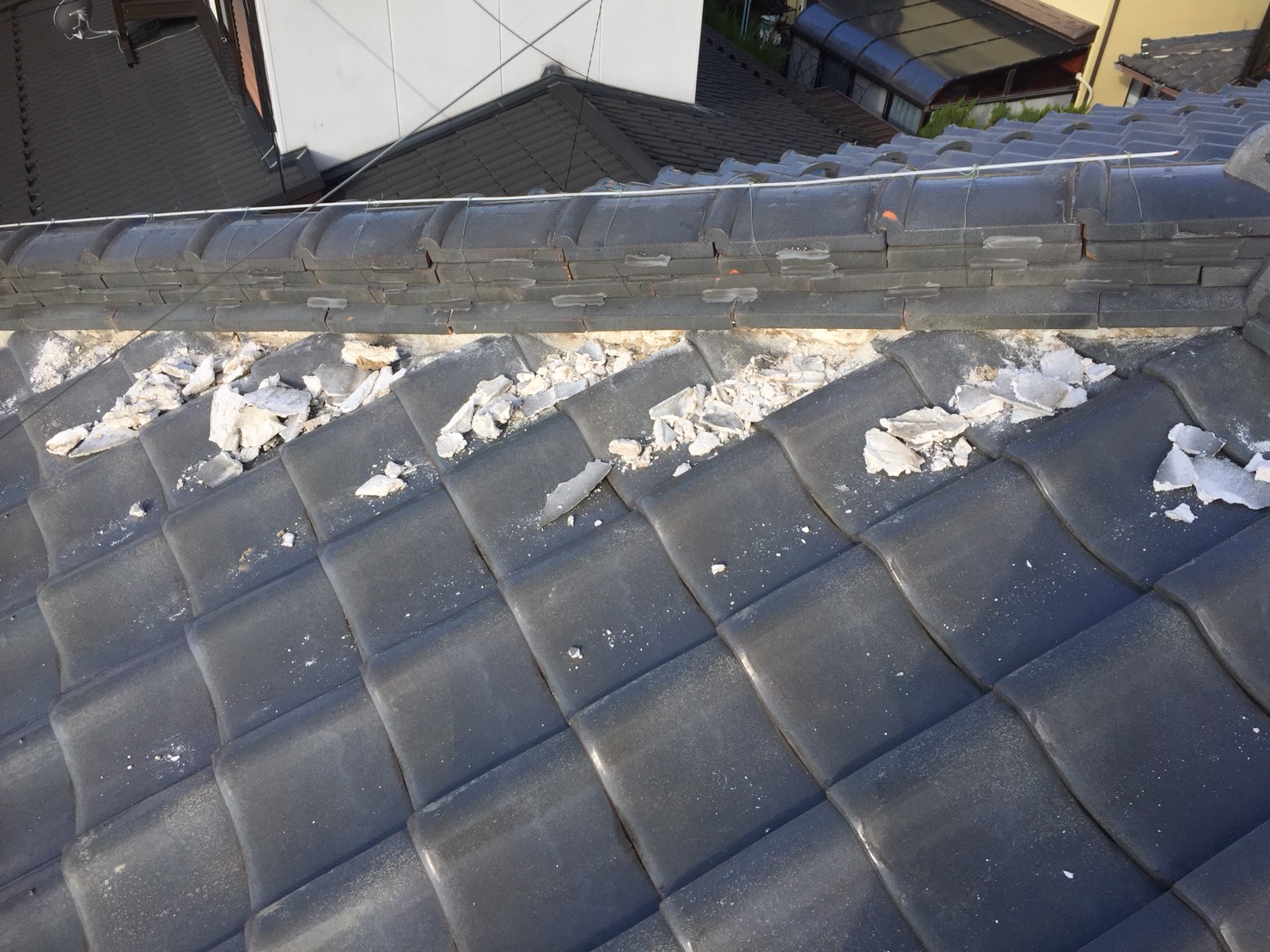漆喰:既設漆喰ハツリ工事【1式】 棟下三日月漆喰塗り【48.4m】 鬼巻き【7箇所】 諸費:諸経費【1式】