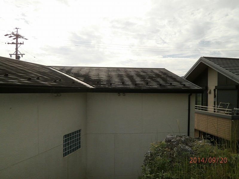 屋根外壁塗装工事 仮設:仮設足場架け払い・シート養生【220平方メートル】 屋根:高圧洗浄【72.1平方メートル】 下塗りシーラー・中塗りシリコン・上塗りシリコン【72.1平方メートル】 外壁:高圧洗浄【129.1平方メートル】 下塗りフィラー・中塗りシリコン・上塗りシリコン【129.1平方メートル】 コーキング(窓回り)【52.0メートル】 軒天ケンエース2回塗り【18.0平方メートル】 破風【10.0メートル】 軒樋【10.5平方メートル】 縦樋【12.4メートル】 シリコン2回塗り シャッタボックス塗装【1式】 鉄部ケレンサビ止め上塗りシリコン【1式】 北側軒天一部補修【1式】 雨樋新設工事 軒樋:パナソニックPC50金具込み【17.3メートル】 縦樋φ60【16.0メートル】 集水器【2ヶ所】 シャッター取付工事リフォームシャッタイタリヤ(特注)シャイングレー 取付施工費【1式】