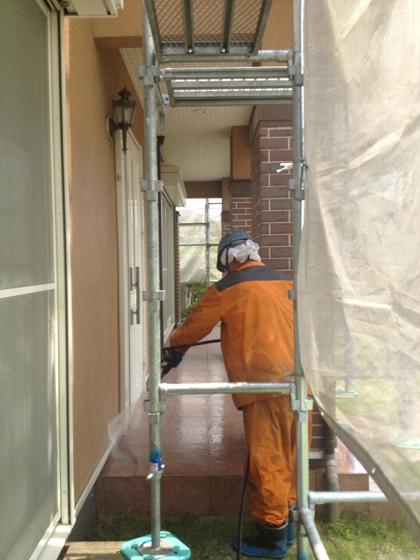 外壁塗装工事:仮設足場架け払い・シート養生【304.4平方メートル】 外壁塗装:高圧洗浄【243.7平方メートル】 モルタル部:下塗りフィラー・中塗り・上塗り【204.1平方メートル】 タイル部:下塗UVプロテクトクリヤー・上塗りUVプロテクトクリア【39.6平方メートル】 他:軒天ケンエース2回塗り【53.4平方メートル】 鼻隠しウレタン2回塗り【29.8平方メートル】 破風板ウレタン2回塗り【34.3平方メートル】 軒樋ウレタン2回塗り【29.8メートル】 雨樋 縦樋撤去処分【35メートル】 縦樋 新設60【35メートル】