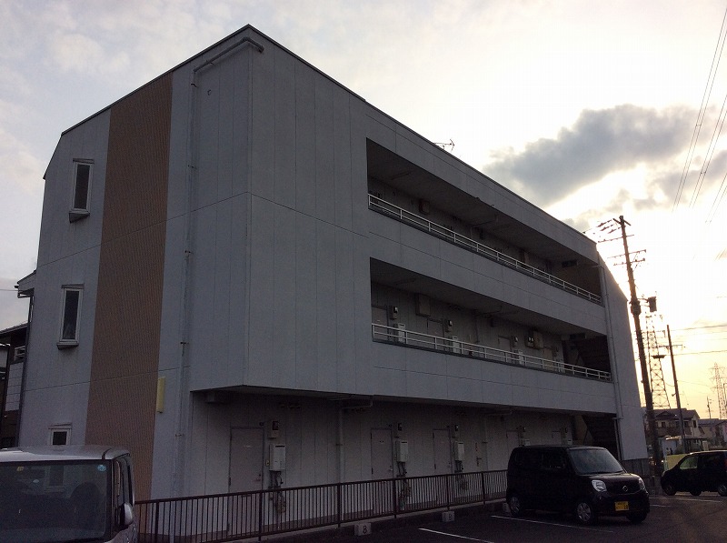 外壁塗装工事:仮設足場架け払い・シート養生【686平方メートル】 外壁:高圧洗浄【659.2平方メートル】下塗りフィラー・中塗りシリコン・上塗りシリコン【611.2平方メートル】 軒天アクリル塗装【140.4平方メートル】 軒樋ウレタン2回塗り【21.4メートル】 縦樋ウレタン2回塗り【98.5メートル】 コーキング爆裂補修エポキシモルタル樹脂【2ヶ所】 コーキング(窓廻り・継部・増し打ち)【993.6メートル】 屋根:高圧洗浄(外壁共)・下塗りシーラー・中塗りシリコン・上塗りシリコン【48平方メートル】 他:笠木・ケレン・サビ止め・ウレタン【88メートル】 鉄扉枠・ケレンサビ止め・ウレタン【15ヶ所】 蛍光灯カバー電気BOX【1式】 階段鉄骨ケレン・サビ止め・ウレタン【50.1平方メートル】 階段手摺ケレン・サビ止め・ウレタン【8.8メートル】 階段足場・脚立足場【1式】