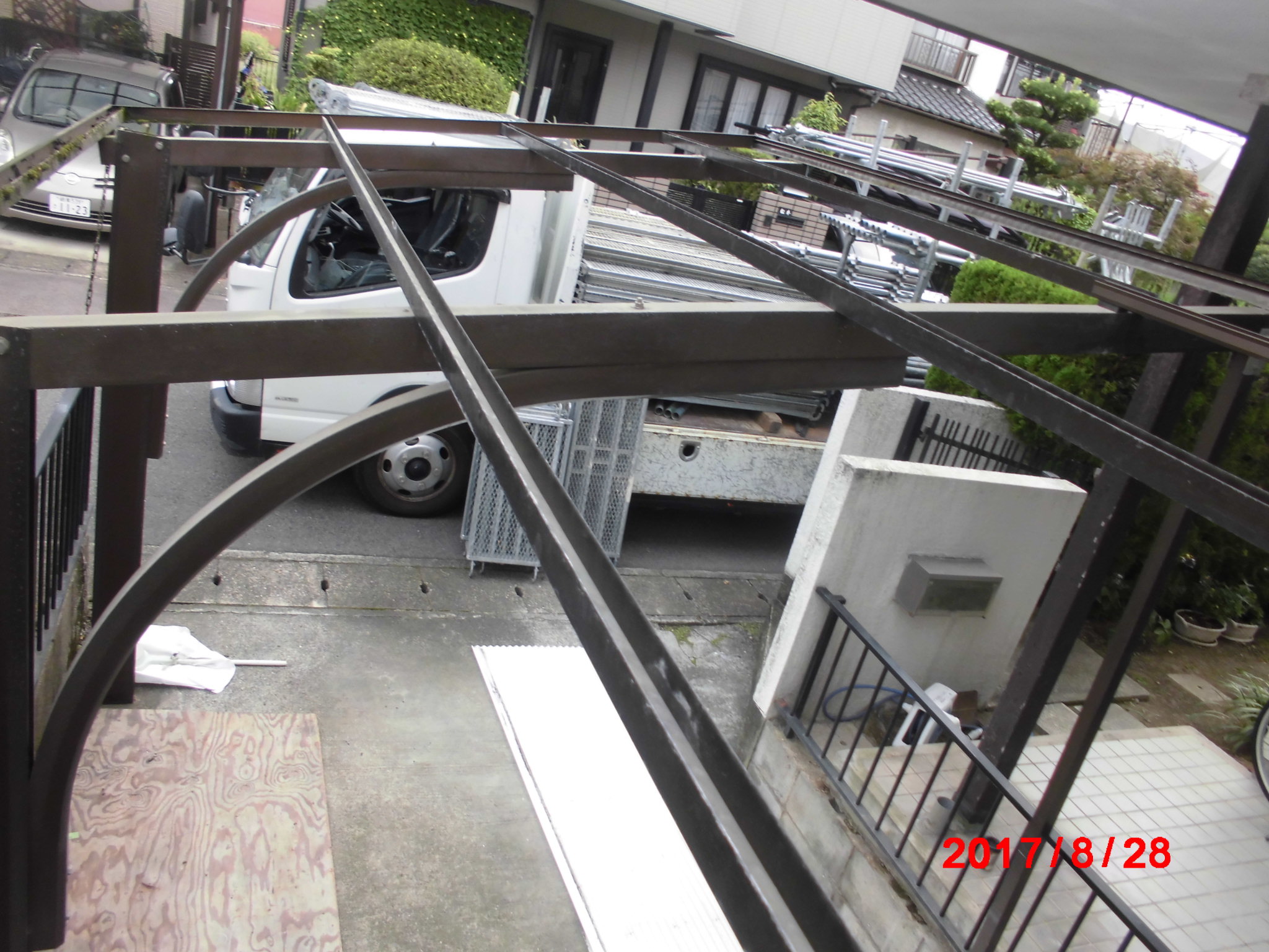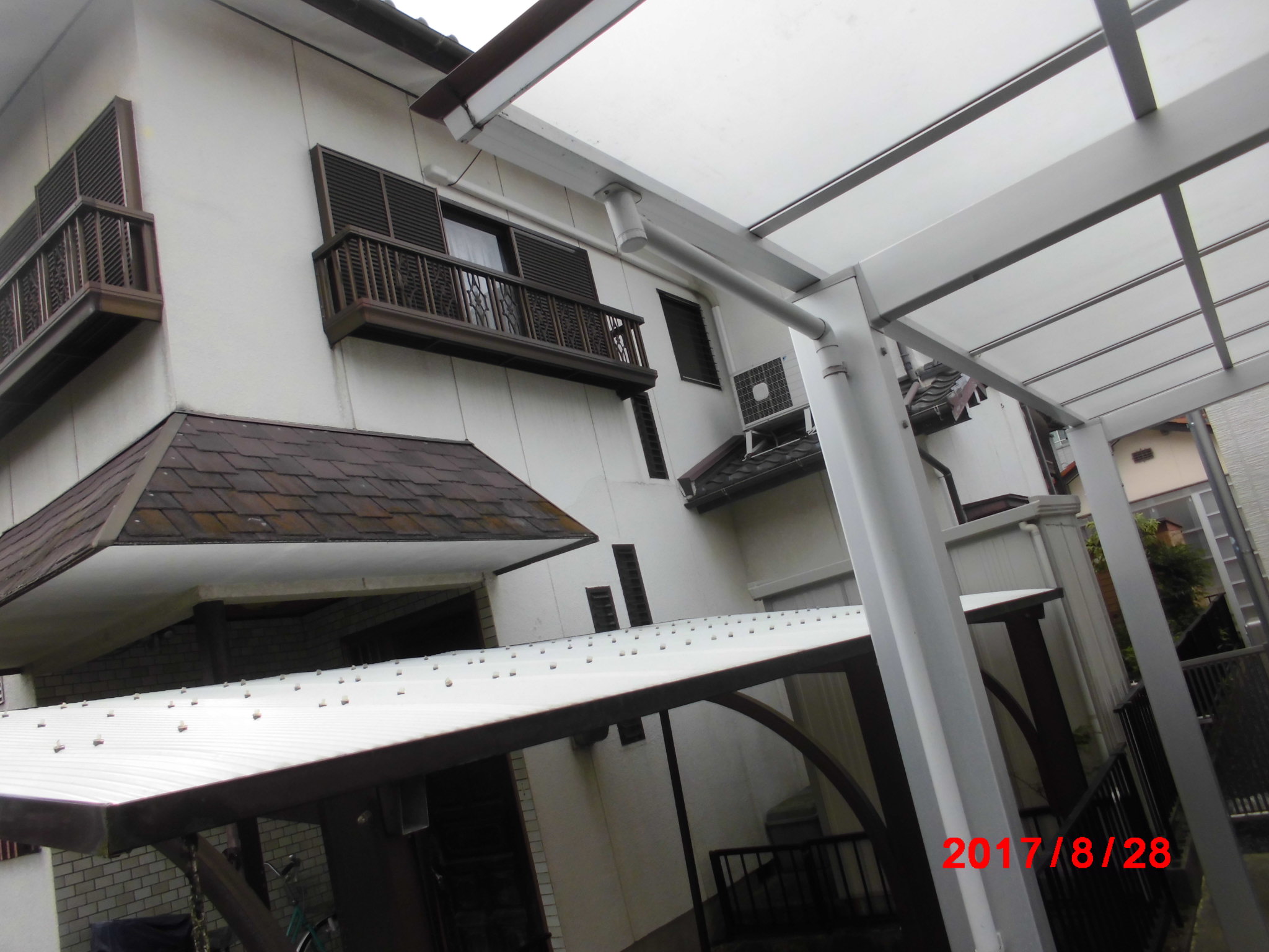 仮設足場架け払い カーポート脱着(張り替え) 高圧洗浄【155?】 下塗りフィラー【155?】 中塗りシリコンファインSi【155?】 上塗りシリコンファインSi【155?】 継部コーキング【一部】 窓廻りコーキング 帯サビ止めシリコン 軒樋シリコン2回塗り たて樋シリコン2回塗り 雨戸・戸袋【1式】 玄関カラーベスト塗装 屋根:漆喰(鬼)【8箇所】 棟下三日月【36箇所】 下がり棟【76箇所】 換気扇板金あて 格子ケレンシリコン塗装 塀シリコン塗装 エアコンカバー脱着【1箇所】 南面樋つなぎ補修 内塀補修(カットなし)
