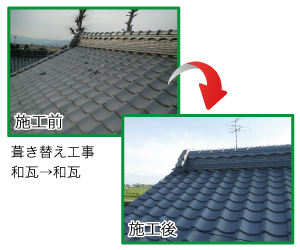 A:もともと瓦は長持ちする屋根材ですし、絶対という事はありません。瓦が割れていたり、ちょっとした荷重で割れてしまうほど劣化している場合は葺き替えた方が家のためには良いと思います。ただお金もかかりますので、下地だけ補修して既存の瓦をそのまま使う葺き戻しという工法もあります。また、ちょっとした補修で十分な場合もあります。屋根の状況を見て、その家その家で事情が違います。