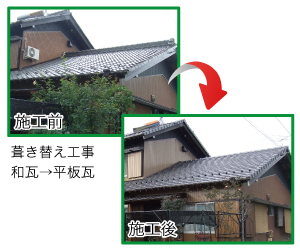 ■和瓦→平板瓦 葺き替え工事