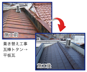 A:どちらにも一長一短があり、どちらが優れているとは言えません。コスト面や工期ではカバー工法のほうが優秀ですが、下地や既存屋根材との兼ね合いで、自由なデザインが出来ないこともあります。重量も増加するため、下地強度や耐震性の問題もあります。