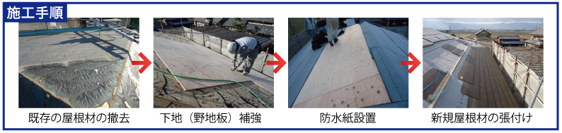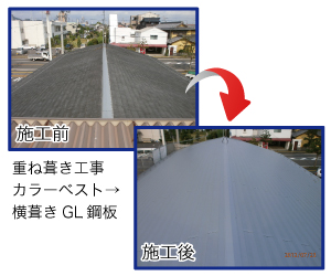 A:どちらにも一長一短があり、どちらが優れているとは言えません。コスト面や工期ではカバー工法のほうが優秀ですが、下地や既存屋根材との兼ね合いで、自由なデザインが出来ないこともあります。重量も増加するため、下地強度や耐震性の問題もあります。