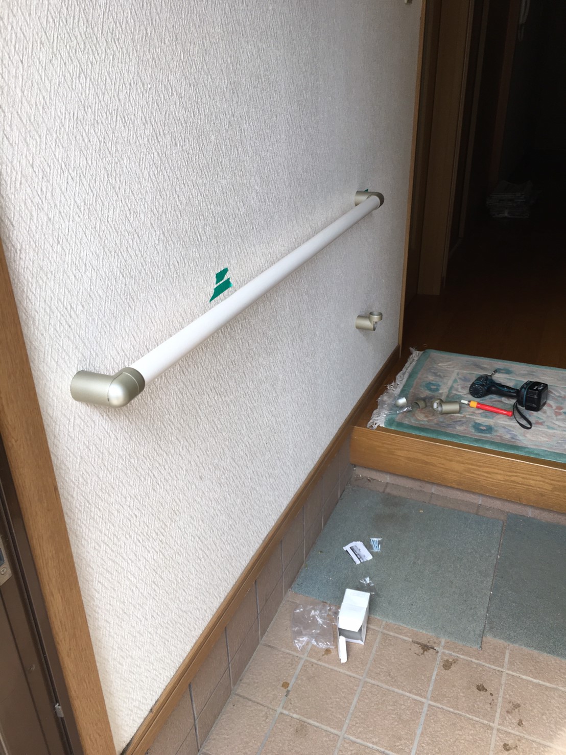 【玄関中手摺工事】 部材費 平板・手摺 L字 1200+700 1式 施工費 1式 諸経費 1式