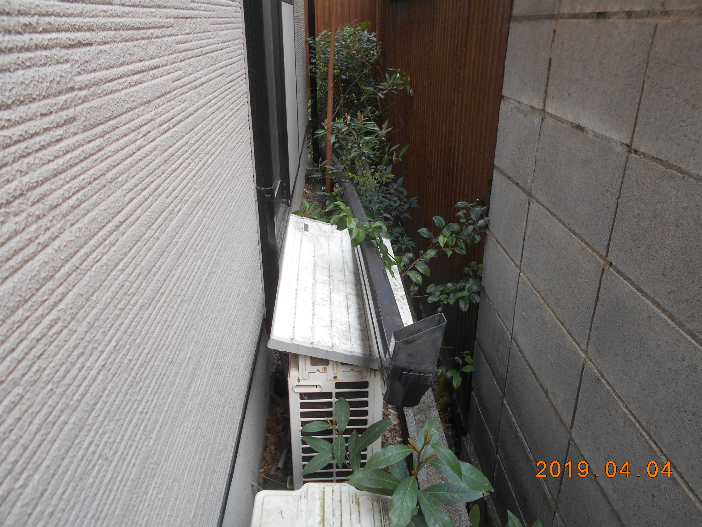 雨どい工事 仮設  仮設足場架け払い 北面 1式 雨どい 既設軒とい撤去、処分 8.0m     既設呼び樋撤去、処分 2.0m     軒とい 角樋PC77金具込 8.0m     呼び樋 60丸 金具 20m     集水器 2個