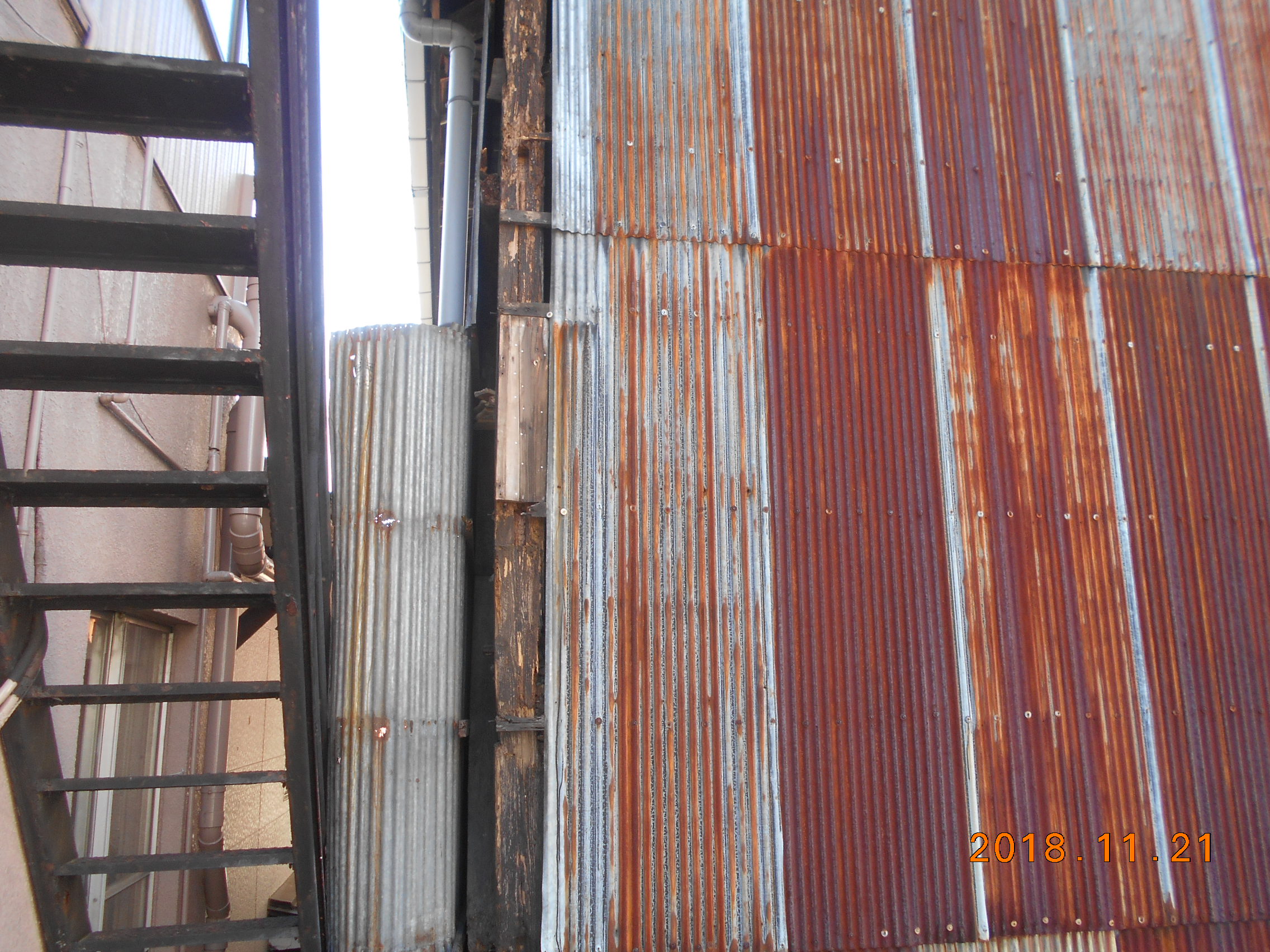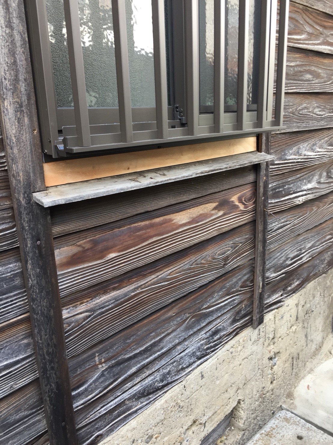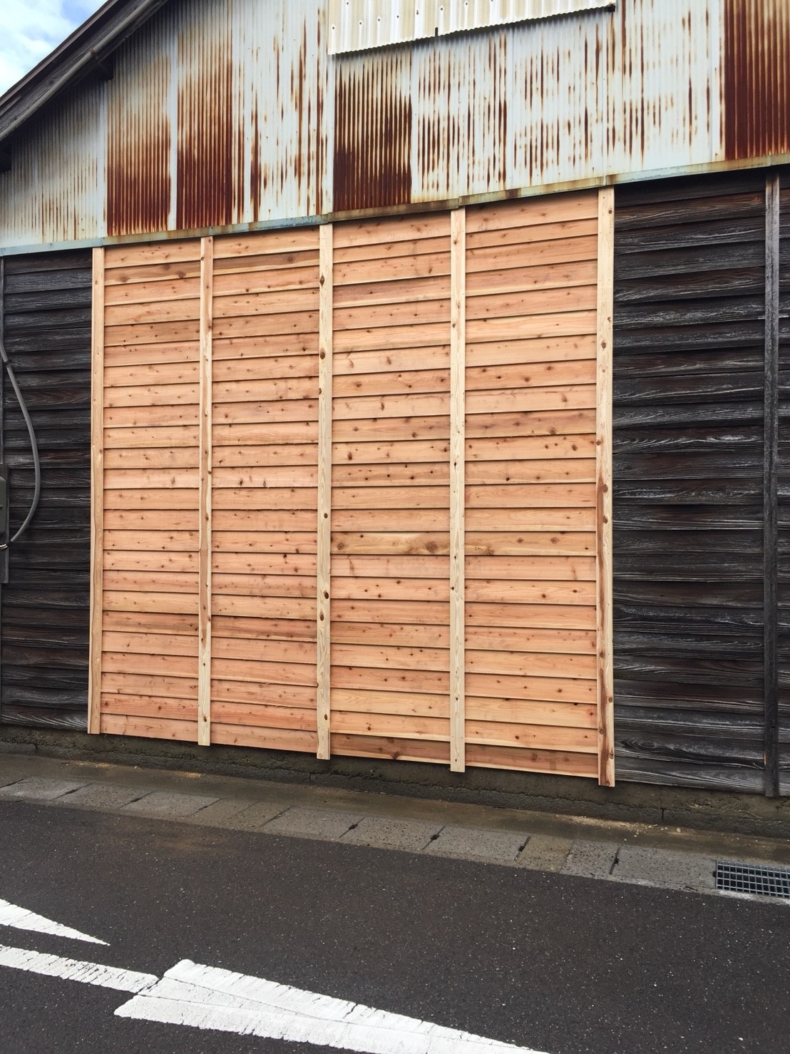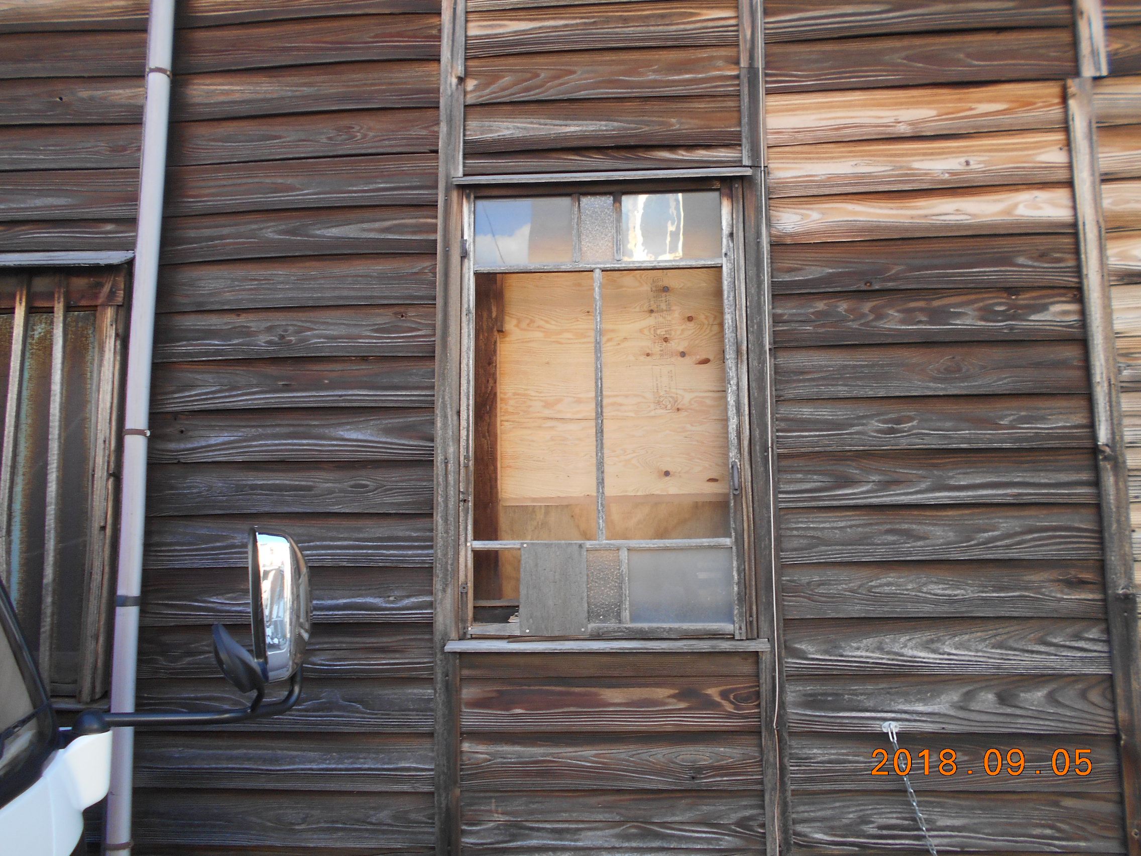 北倉庫  仮設足場  ガラス割れ取替工事  木製ガラス撤去、アルミサッシ  東妻 木板大工工事     キシラデコール塗装  2F部 仮設足場架け払い     木板大工工事     キシラデコール塗装 西倉庫  木壁(杉皮使用)大工工事 北倉庫  棟包み板金工事 木下地共 自宅  外壁補修トタン貼り 事務所  南東 仮設足場架け払い  既設トタンめくり処分  木下地大工工事  波トタン張り工事 諸費 諸経費