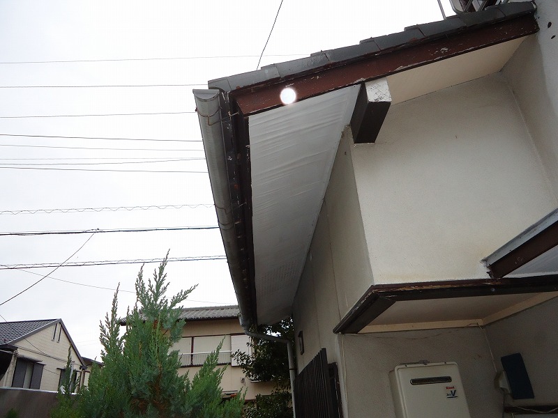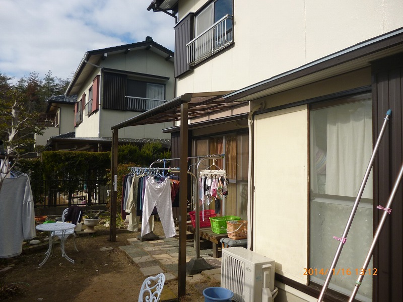 玄関廻りの修繕、塗装、樋架け掛え、テラス屋根の取替えをさせていただきました。