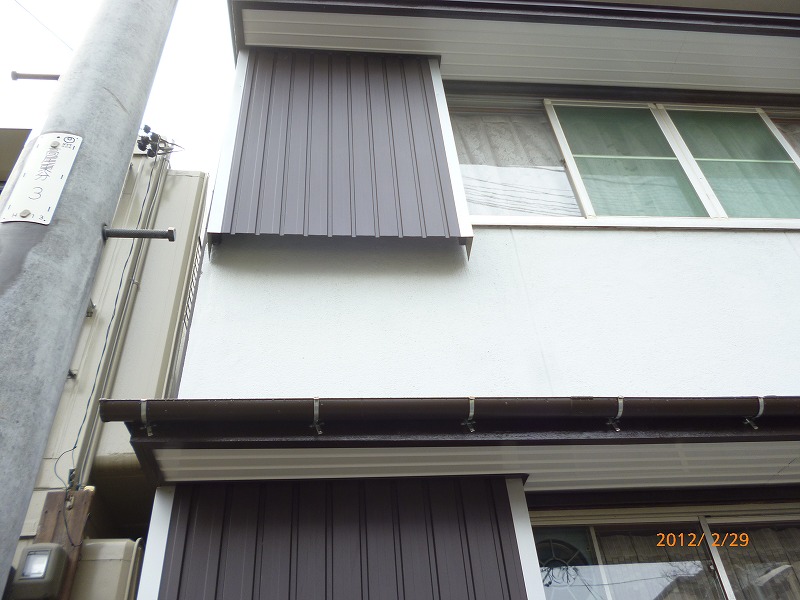 以前、雨降りの際、庇及び雨樋の一部破損個所有する故、雫が塀に当たり跳ね返ってガラス戸が塗れる状況でしたが、良好な工事に依り改善され、全体的に見栄えがよくなりました。