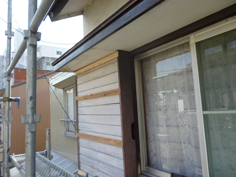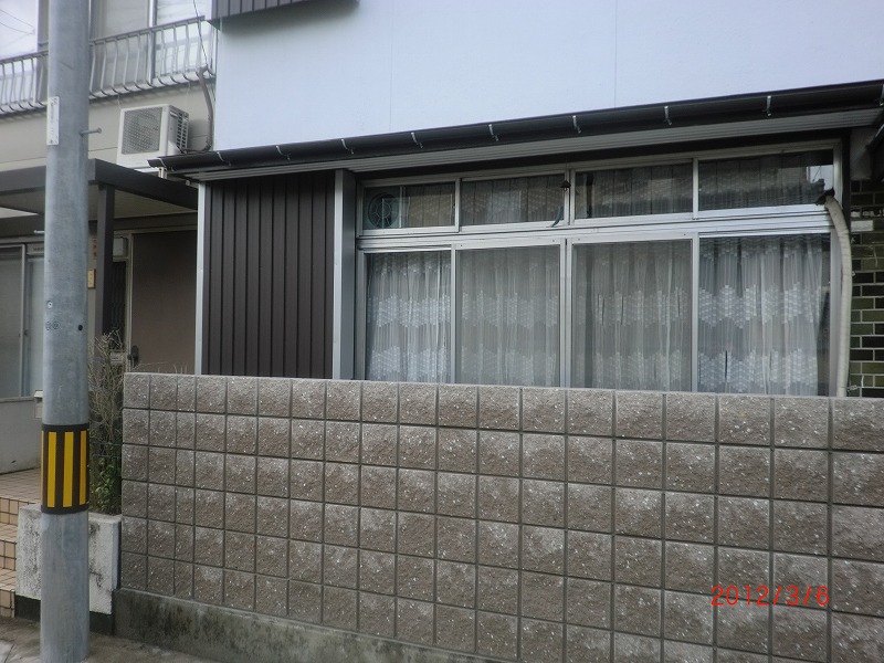 雨戸、庇、雨樋、塀の工事を行わせていただきました。