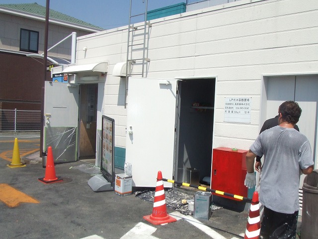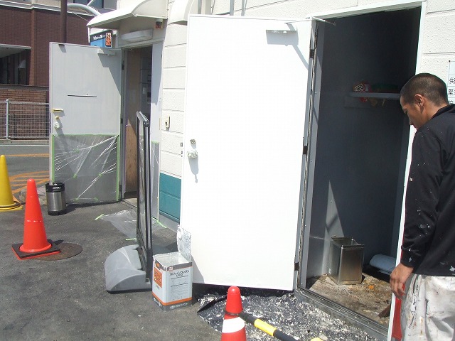 店舗裏のドア3枚の塗装工事を行わせて頂きました。