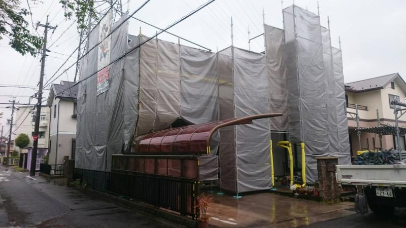 屋根外壁塗装工事 仮設:仮設足場架け払い・シート養生【244?】 カーポート屋根脱着【1式】 屋根:高圧洗浄【78?】 下塗りシーラー【78?】 中塗りシリコン塗装【78?】 上塗りシリコン塗装【78?】 外壁:高圧洗浄【138?】 下塗りフィラー【138?】 中塗り防水弾性遮熱塗装アステック【138?】 上塗り防水弾性遮熱塗装アステック【138?】 シール:窓廻り増し打ち【72m】 継部打ち替え【128m】 雑部:軒天ケンエース2回塗り【27.6?】 鼻隠しシリコン2回塗り【20.8m】 破風板シリコン2回塗り【19.8m】 軒樋シリコン2回塗り【20.8m】 縦樋シリコン2回塗り【31.5m】 ベランダ:ウレタン防水【1式】