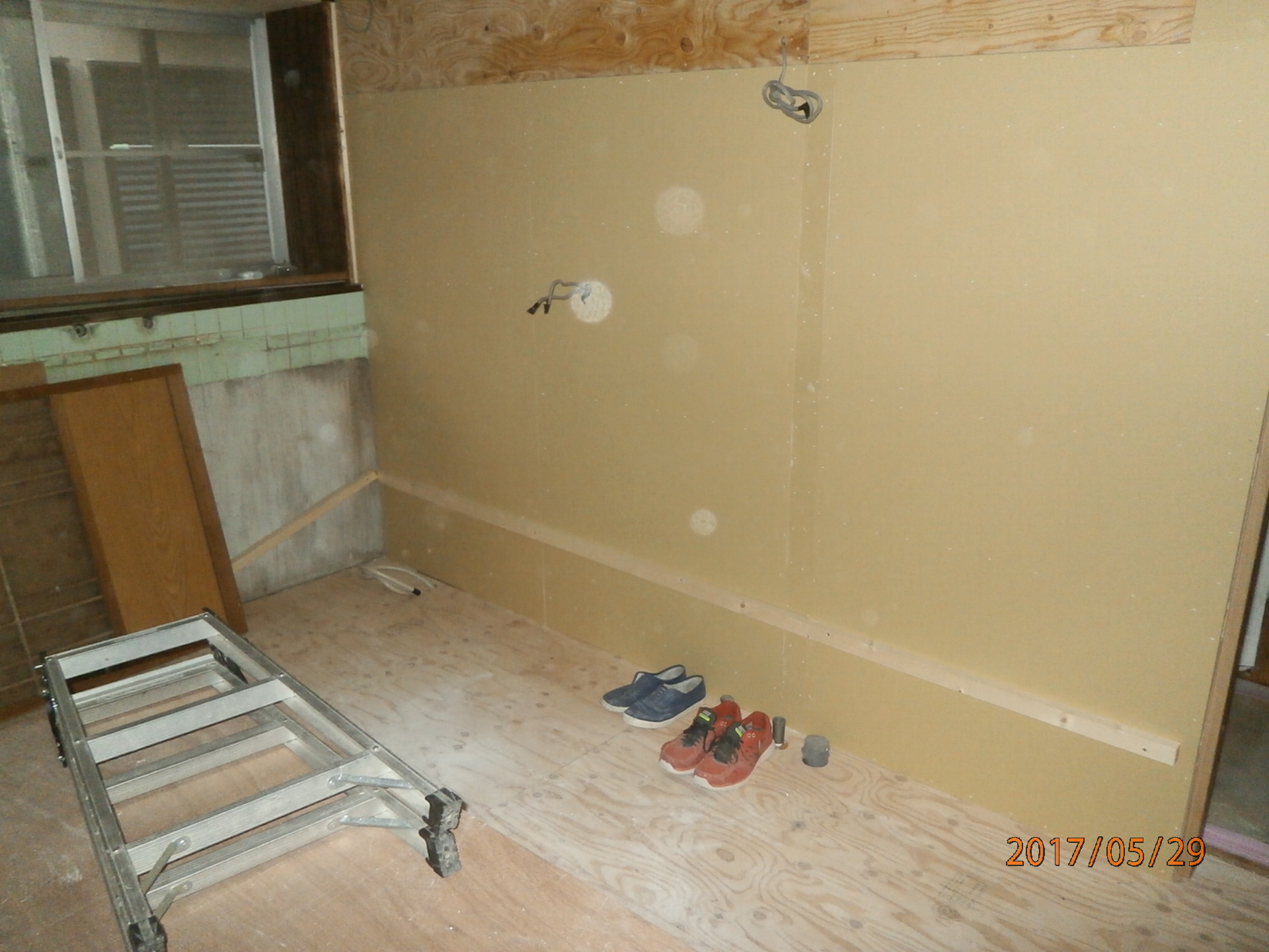 キッチン改修工事 解体:既設キッチン,換気扇解体・撤去・処分【1式】 造作:キッチン背面壁造作【1式】 壁クロス下地ベニヤ貼り【24.8?】 天井クロス下地ベニヤ貼り【9.9?】 床クッションフロア下地コンパネ貼り幅木含【9.9坪】 内装:壁クロス貼り【25.0?】 天井クロス貼り【13.2?】 床クッションフロア貼り【9.9?】 出窓キッチンパネル貼り【2.6?】 水道:給水給湯排水配管移設接続工事【1式】 電気:キッチン換気扇、照明、回路移動接続工事【1式】 コンセント,スイッチ,シーリングカバー取替【1式】 設備:リクシルシステムキッチンシエラ14?型255cm【1式】