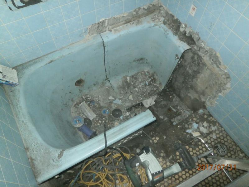 浴室改修工事 浴室 解体:既設天井、既存浴槽撤去・処分【1式】 ※浴室入口解体(設備搬入が出来る範囲) 左官:床土間コン打説【1式】 配管繋ぎ込み・水栓工事【1式】 電気:浴室配線工事、洗面室入口スイッチ類移設【1式】 造作:浴室入口補修工事材工【1式】 設備:タカラスタンダードぴったりサイズエメロード1625×1143【1セット】 洗面工事 設備:TOTOサクアW600・2面鏡 水道:現場施工費処分共【1式】 洗濯水栓取付工事【1式】 内装:壁と床CF【2?程度】 木・巾木取替共【1式】 塗装:脱衣・トイレ入口枠塗装【1式】 トイレ工事:設備 TOTOピュアレストQR(手洗付)リモデル【1セット】 水道:現場施工費、処分共【1式】 その他:ストッパー取替え材工【1式】