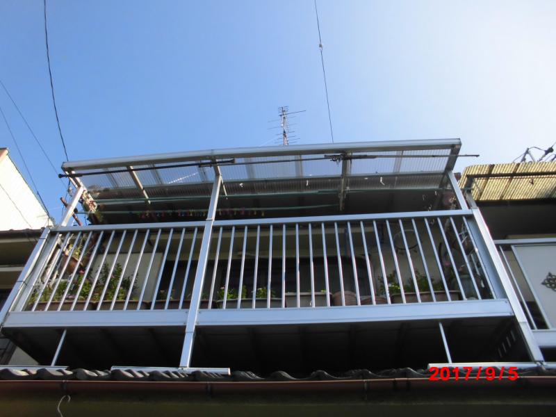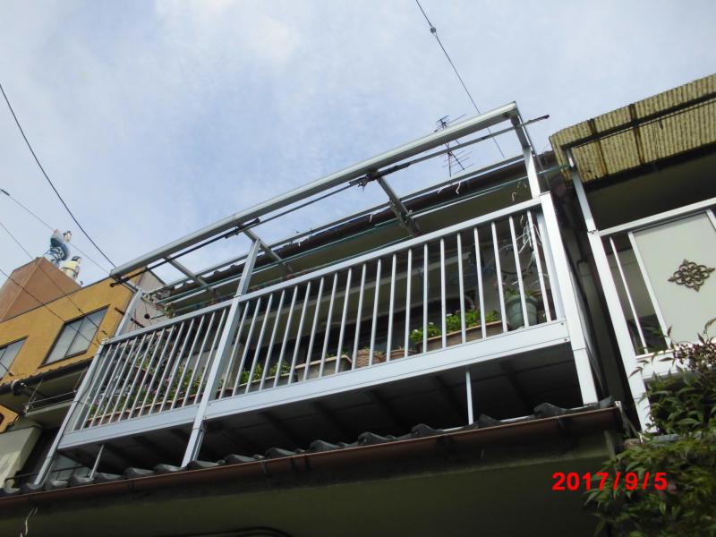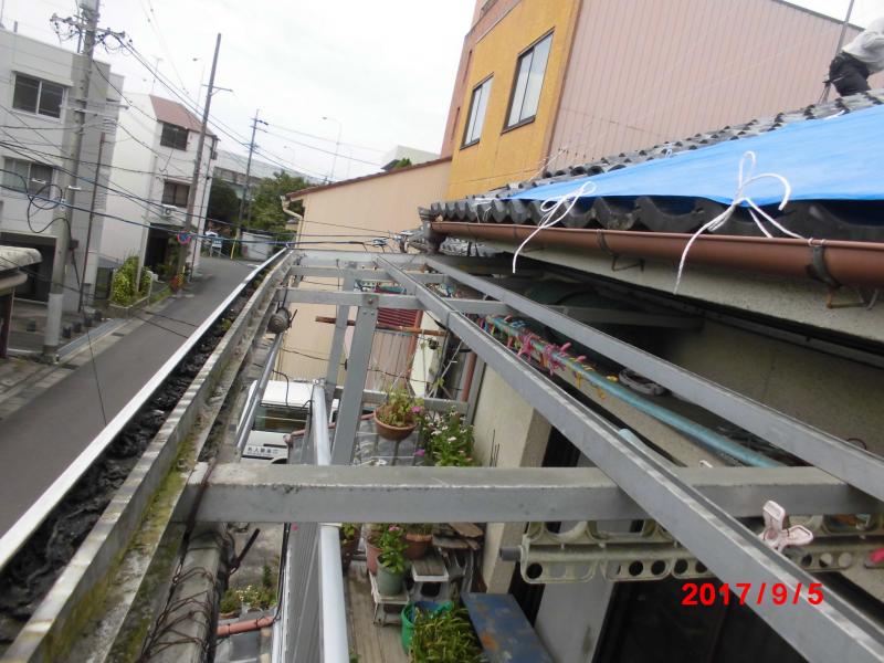 仮設足場架け払い南面 アンテナ脱着 テラス張替え(南)【12.6?】 瓦めくり泥処分【78?】 コンパネ貼り【78?】 北面かさ上げ工事 立て平(横葺き)ガルバリウム【78?】 棟【7m】 既設軒樋架け替え(南面のみ)【7m】 集水器【1個】 呼び樋【1m】 取り合い(北面)