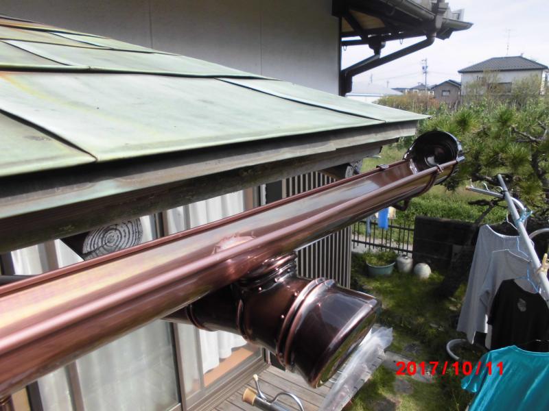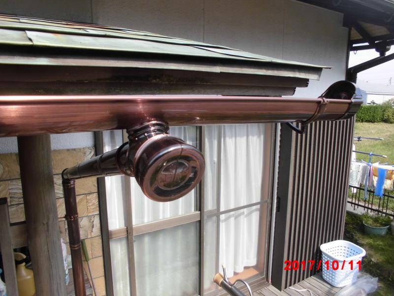玄関雨樋工事(いぶしステンレス樋使用) 樋:軒樋架け替えΦ105金具共【3.9m】 集水器【1個】 たて樋【約3m】