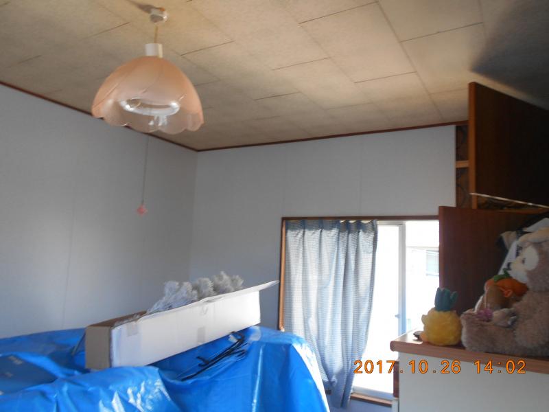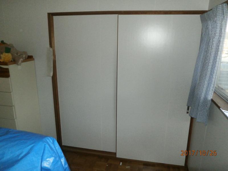 2F洋室壁、プリント・木目・板張替え 材:2×8、ビス等【1式】 大工:張替え手間【1式】 処分:捲り・処分【1式】 テラス:波板(ポリカ)張替え 3200×1800 撤去手間【1式】 処分【1式】 張替え手間【1式】 材:6尺×6枚+プラフック【1式】