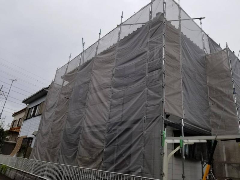 外壁塗装工事 仮設:仮設足場掛け払い・シート養生【1式】 外壁:高圧洗浄【131.4?】 下塗りフィラー【131.4?】 中塗り日本ペイントファインフッ素【131.4?】 上塗り日本ペイントファインフッ素【131.4?】 シール:継部、窓廻りシーリング補修【1式】 樋:軒樋シリコン2回塗り【40.1m】 たて樋シリコン2回塗り【18.0m】 付帯:軒天ケンエース2回塗り【27.8?】 破風シリコン2回塗り【2.8m】 鼻隠しシリコン2回塗り【40.1m】 雨戸、戸袋シリコン2回塗り(大12、中21)【1式】 カーポート屋根張替え【1式】 諸費:諸経費【1式】