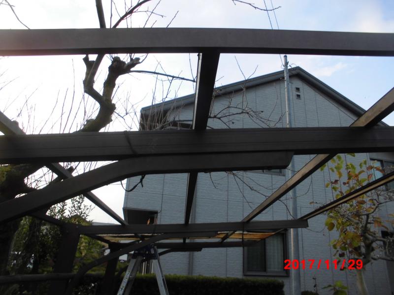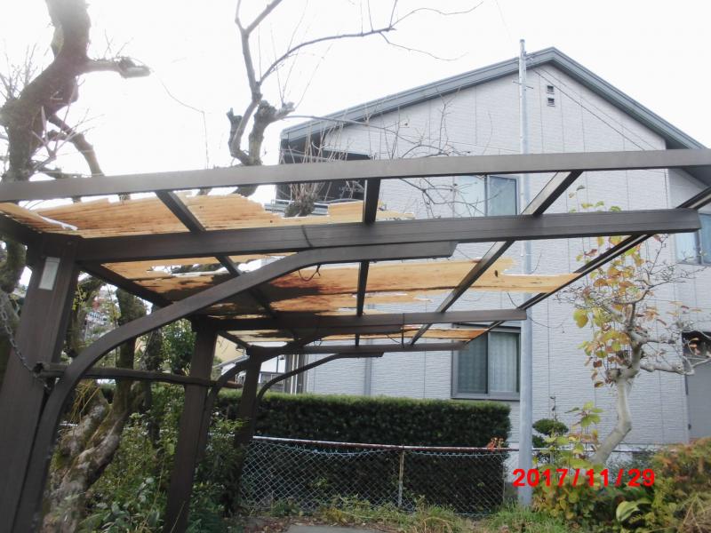 波テラス改修工事 アパート:階段上部波テラス張替【1式】 車庫:カーポート屋根張替【1式】  小屋屋根改修工事 屋根波トタン張替工事【17.5?】