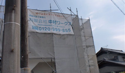 外壁塗装や屋根塗装は足場を架けて行うのが一般的です。高圧洗浄時には水飛沫が飛ばないように、塗装中は塗料が飛ばないように、メッシュシートを足場に掛けます。周囲や塗らない部分を保護することを養生といいます。しっかりと養生されていないとご近隣の方に迷惑をかけてしまいますので、この金額が含まれているかを確認しましょう。