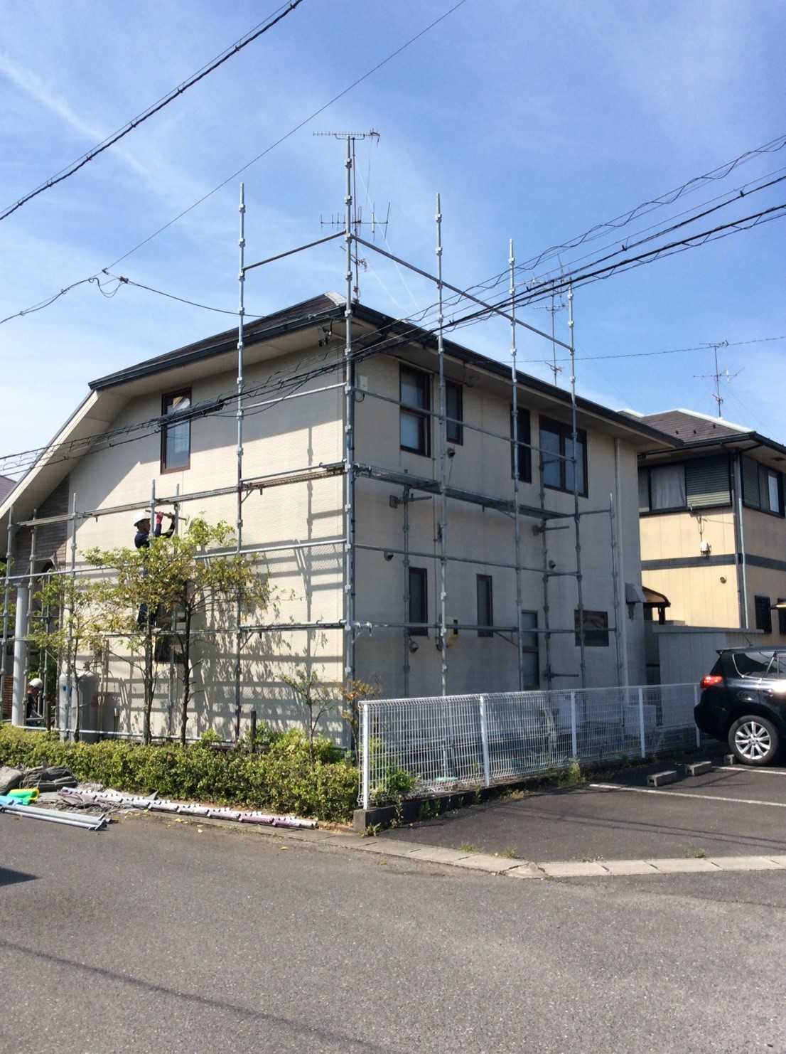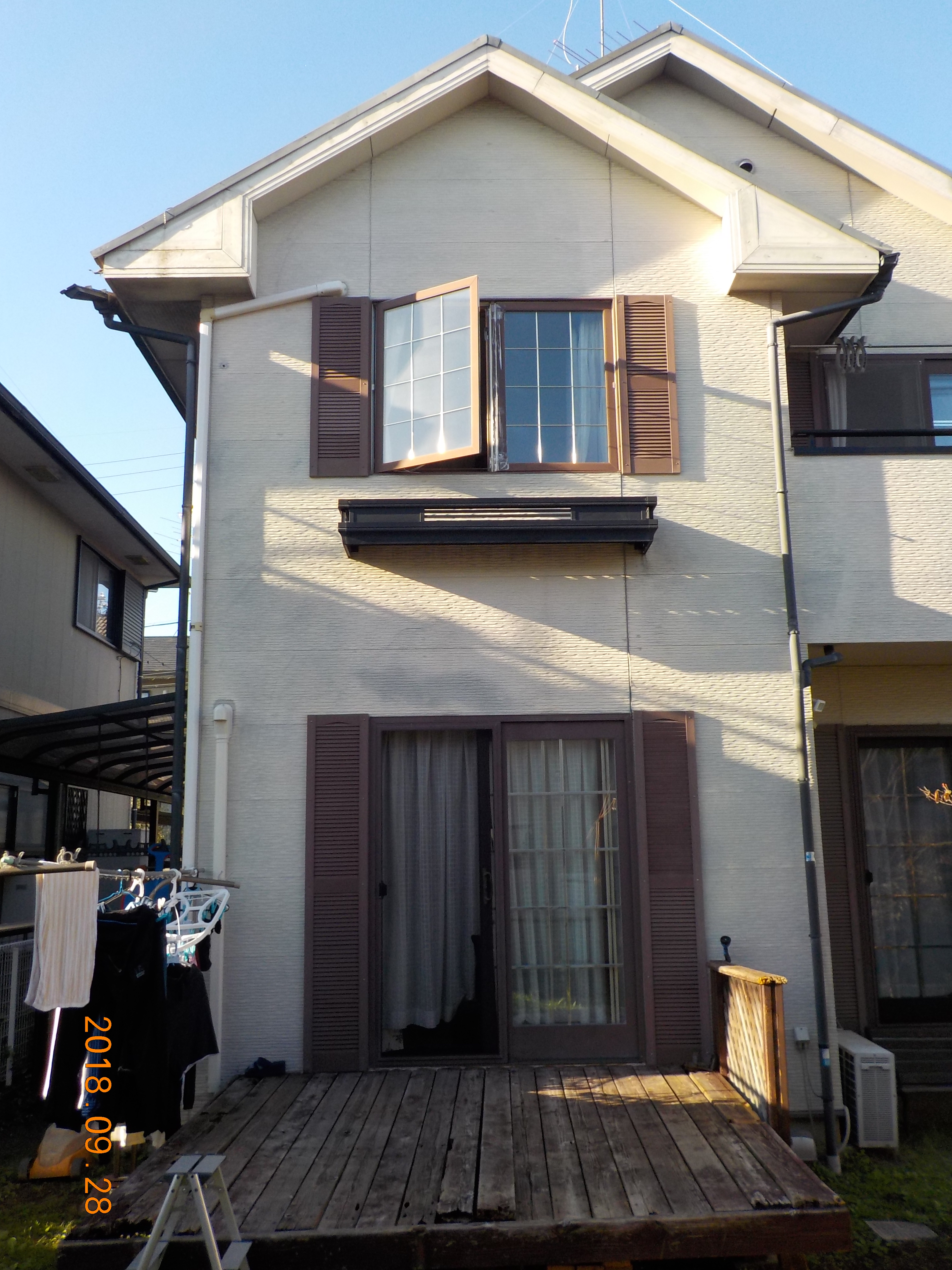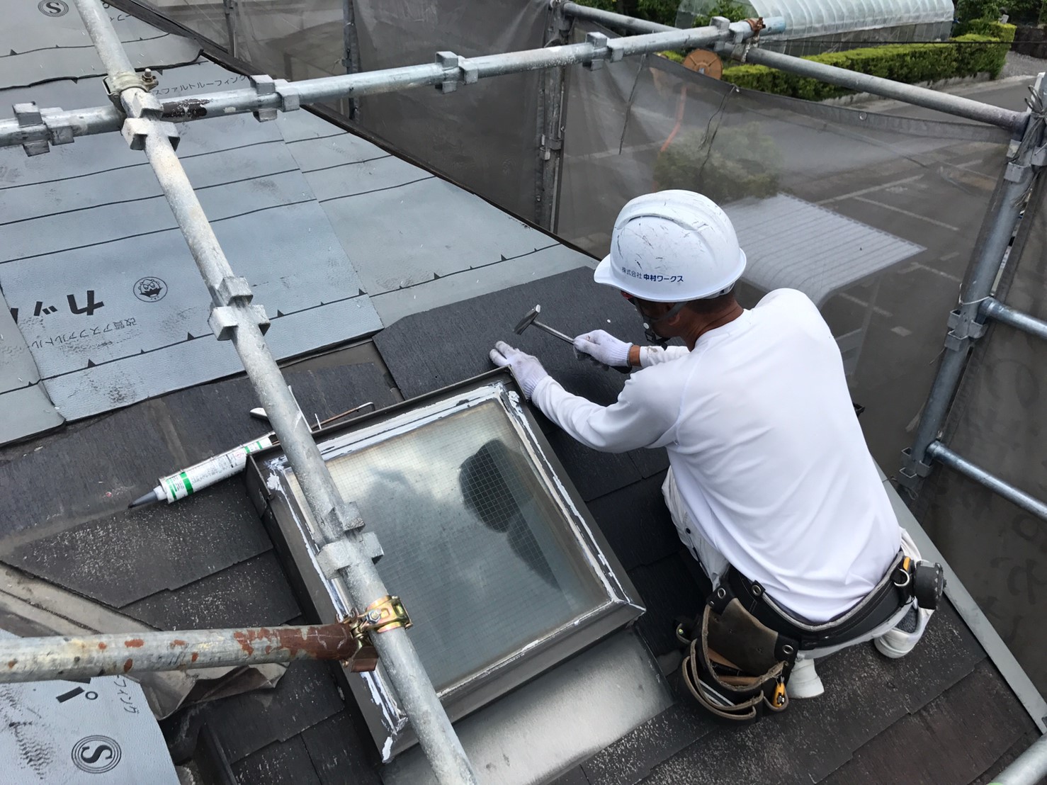 台風復旧工事 足場:仮設足場全面 【1式】 屋根足場 施工必要範囲 【1式】 西面テラス屋根復旧工事 ※足場組み施工時必要になります 既設ポリカーボネート板処分 2mm厚…工事に含まれていません 材料:760×1400 2mm厚ポリカーボネート板+ゴムパッキン×1…工事に含まれていません 施工費 ※破損箇所も復旧 【1式】 破損箇所は綺麗に戻せない場合ご容赦下さい。 屋根カラーベスト飛散部分復旧工事 瓦工:既設カラーベスト捲り・処分25㎡程度 棟板金共 【1式】 ゴムアスルーフィング貼り カラーベスト葺き 明取り窓有り 【1式】 板金:棟板金・木下地共7m程度 ケラバ包み8m程度 【1式】 ※2階南面明取り窓面中心に飛散目立ちます…部分補修につき保証対象外です 窓サッシ サッシ工事(カバー工法)W1540×H1140 298、520円 【1式】 諸費 諸経費 【1式】