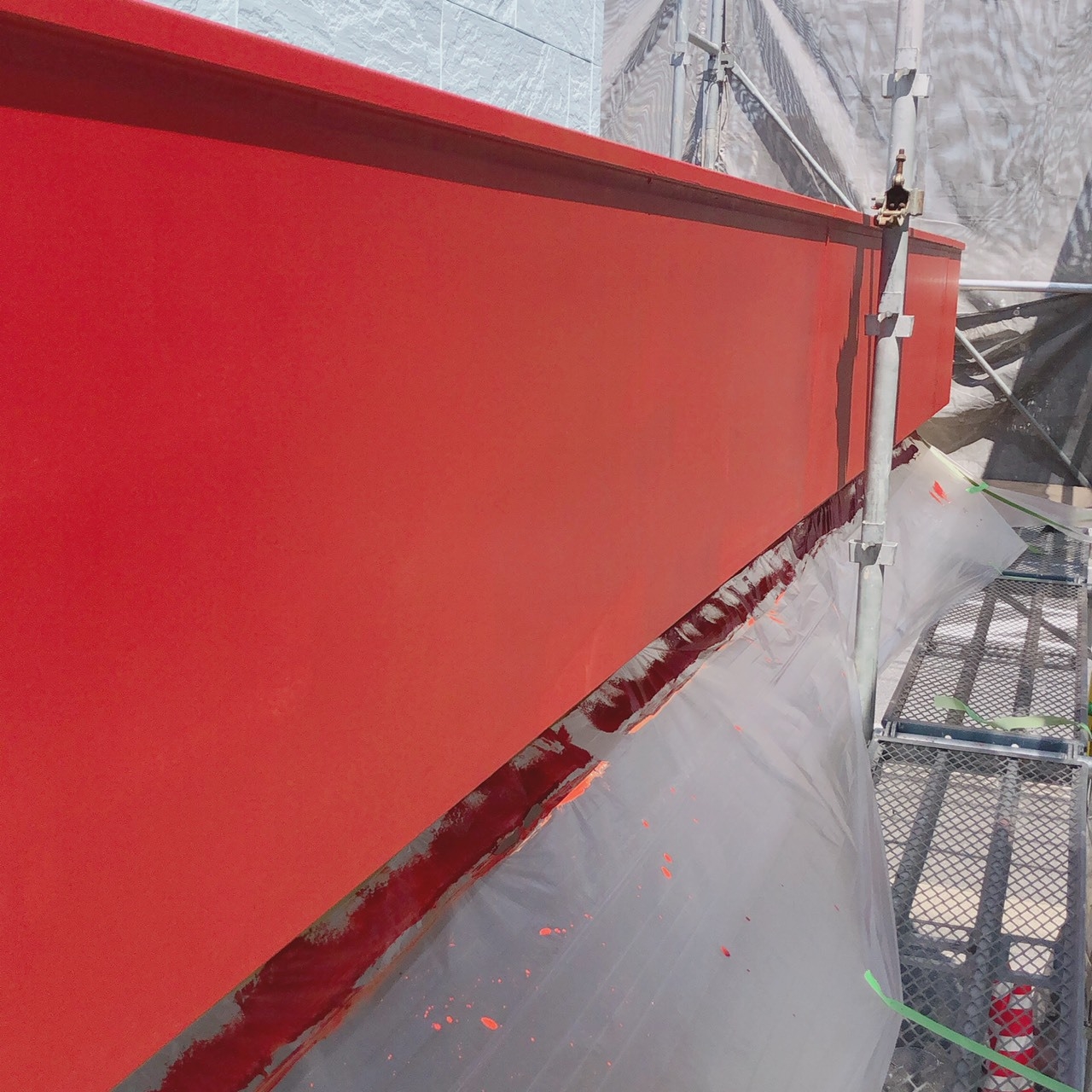 【仮設】仮設足場架け払い・シート養生 330㎡ 【外壁】高圧洗浄 119㎡ 下塗り 専用下塗り 119㎡ 中塗り 遮熱・無機4フッ化フッ素塗装 119㎡ 上塗り 遮熱・無機4フッ化フッ素塗装 119㎡ KFケミカル セミフロンスーパーマイルドⅡ・遮熱 シールコーキング窓廻り増し打ち 1式 【付帯】 軒樋フッ素2回塗り 51.7m たて樋フッ素2回塗り 34m 戸箱・雨戸フッ素2回塗り 1式 庇・霧除けフッ素2回塗り 1式 壁際のし見切りフッ素2回塗り 20m 軒裏白ベニヤ部ケンF-2 2回塗り 1式 破風板 キシラデコール 2回塗り 1式 東2階壁際のし瓦つつみ板金工事 1式