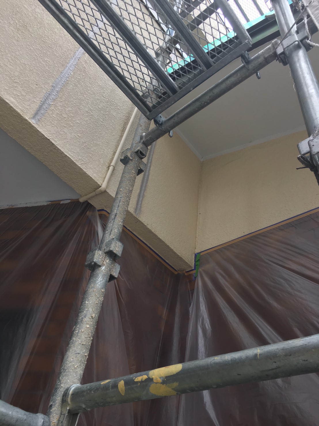 ※北面除く3面工事範囲 仮設 仮設足場架け払い・シート養生 224㎡ 一式 カーポートポリカ平板脱着 すべて外して清掃 一式 境界フェンス脱着※敷地内に養生し仮置き 一式 外壁 高圧洗浄 149㎡ 下塗り シーラー又はフィラー 149㎡ 中・上塗り ラジカル制御塗装 パーフェクトトップ シール コーキング縦部・窓廻り増し打ち 255m 付帯 トイレ屋根先・シリコン塗装2回塗り 6.3m 軒樋・たて樋 シリコン塗装2回塗り 20.2m 軒天 ケンエース 2回塗り 24.2㎡ 東面 戸箱・雨戸 シリコン2回塗り 一式 大屋根・下屋根・サビ止め+シリコン2回塗り 37m アンテナのカイド(ひっぱり線)処分 一式 板金 トイレ上屋根カバー工事 5㎡ 一式 木下地+ルーフィング+ケラバ・唐草・壁際見切り 立平葺き(ガルバリウム鋼板) 大屋根 高圧洗浄 101.4㎡ 下塗りサビ止め 101.4㎡ 中・上塗り ファインルーフⅡ 101.4㎡ 下屋根 高圧洗浄 5.1㎡ 下塗りサビ止め 5.1㎡ 中・上塗り ファインルーフⅡ 5.1㎡
