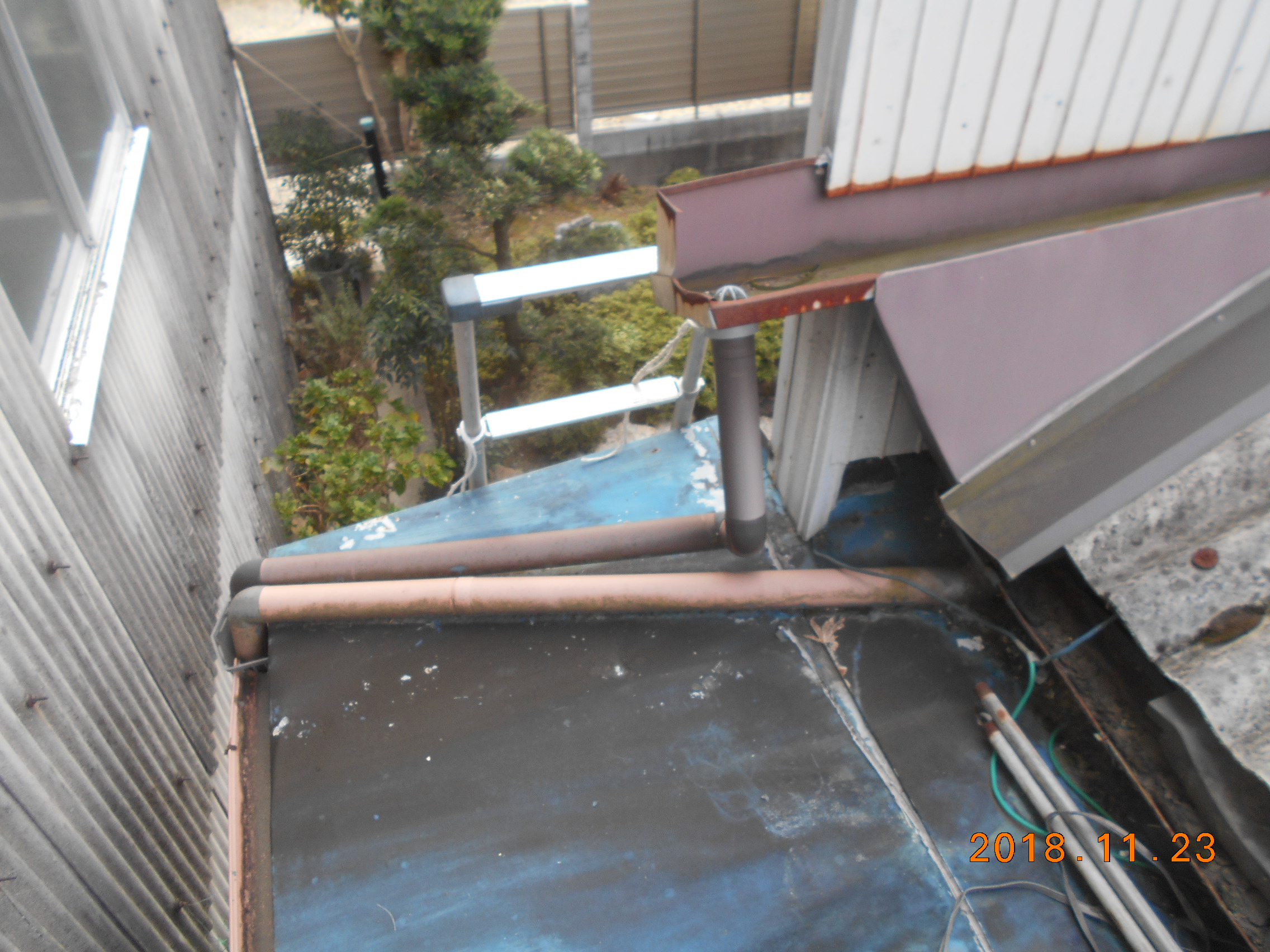 屋根工事 塗装 高圧洗浄 15㎡ 下塗りシーラー又はサビ止め 15㎡ 中塗りシリコン塗装 15㎡ 上塗りシリコン塗装 15㎡ シリコンベスト 日本ペイント 東(庇) 既設屋根コンパネ貼り 一式 立平(GL )貼り 水切り