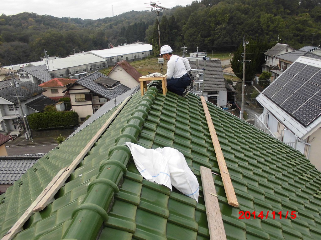 屋根漆喰、棟葺き戻し工事