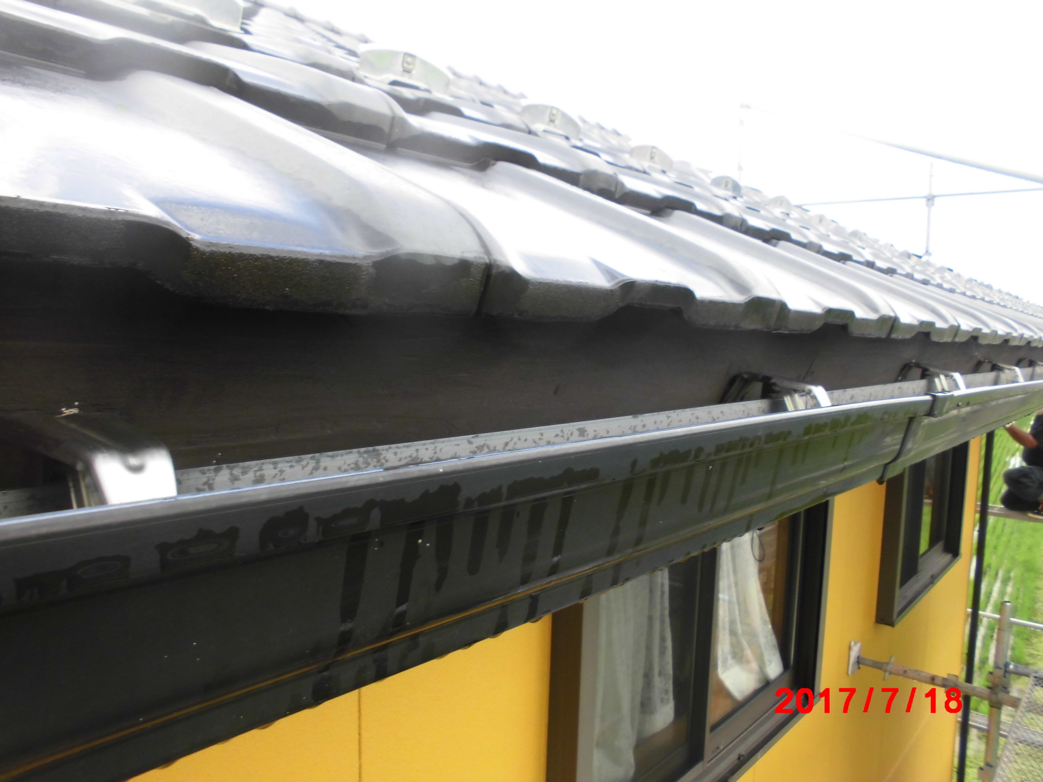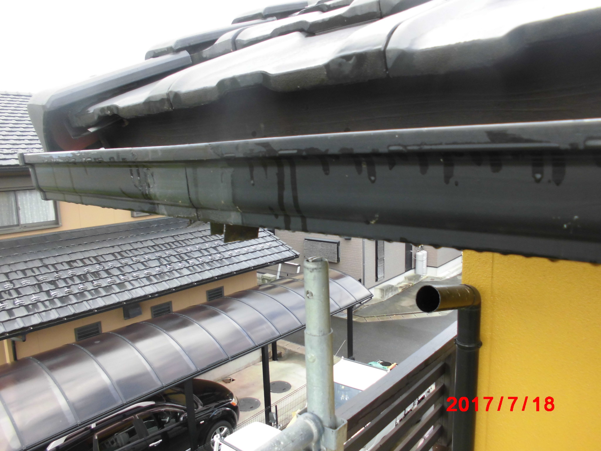 樋工事 仮設:仮設足場架け払い東・北’【1式】 樋:既設軒樋・縦樋撤去・処分【13.0m】 軒樋角PC50(金具込)【11.0m】 縦樋60丸(金具込)【2.0m】 集水器【2ヶ所】