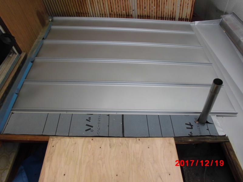 屋根工事 既設屋根めくり、処分費【1式】 下地コンパネ張り大工工事(明り取り部除く)【1式】 瓦棒GL8.4?【1式】 波ポリカーボ8.6?【1式】 合板、水切り6m【1式】 水上面戸【1式】