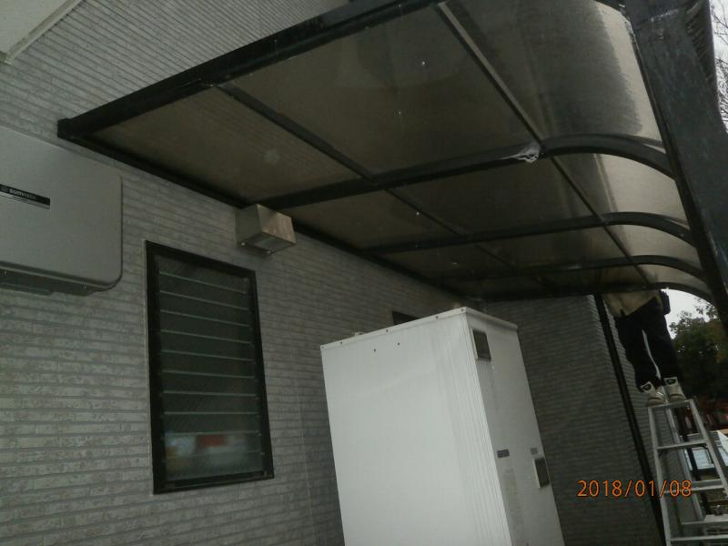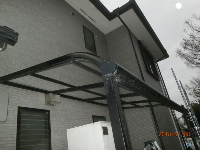 外壁塗装工事 仮設:仮設足場架け払い、シート養生【272.0㎡】 テラス脱着【1式】 外壁:サイディング破損部補修【1式】 高圧洗浄【168.1㎡】 下塗りUVプロテクトクリヤー【168.1㎡】 上塗りUVプロテクトクリヤー【168.1㎡】 軒天ケンエース2回塗り【46.1㎡】 鼻隠し・破風板ウレタン2回塗り【64.1m】 軒樋ウレタン2回塗り【61.1m】 たて樋ウレタン2回塗り【42.1m】 既設コーキングカット(継部)【1式】 コーキング(継部・窓廻り)【266.2m】 シャッターボックスウレタン塗装(9箇所)【1式】 北面テラス樋補修【1式】